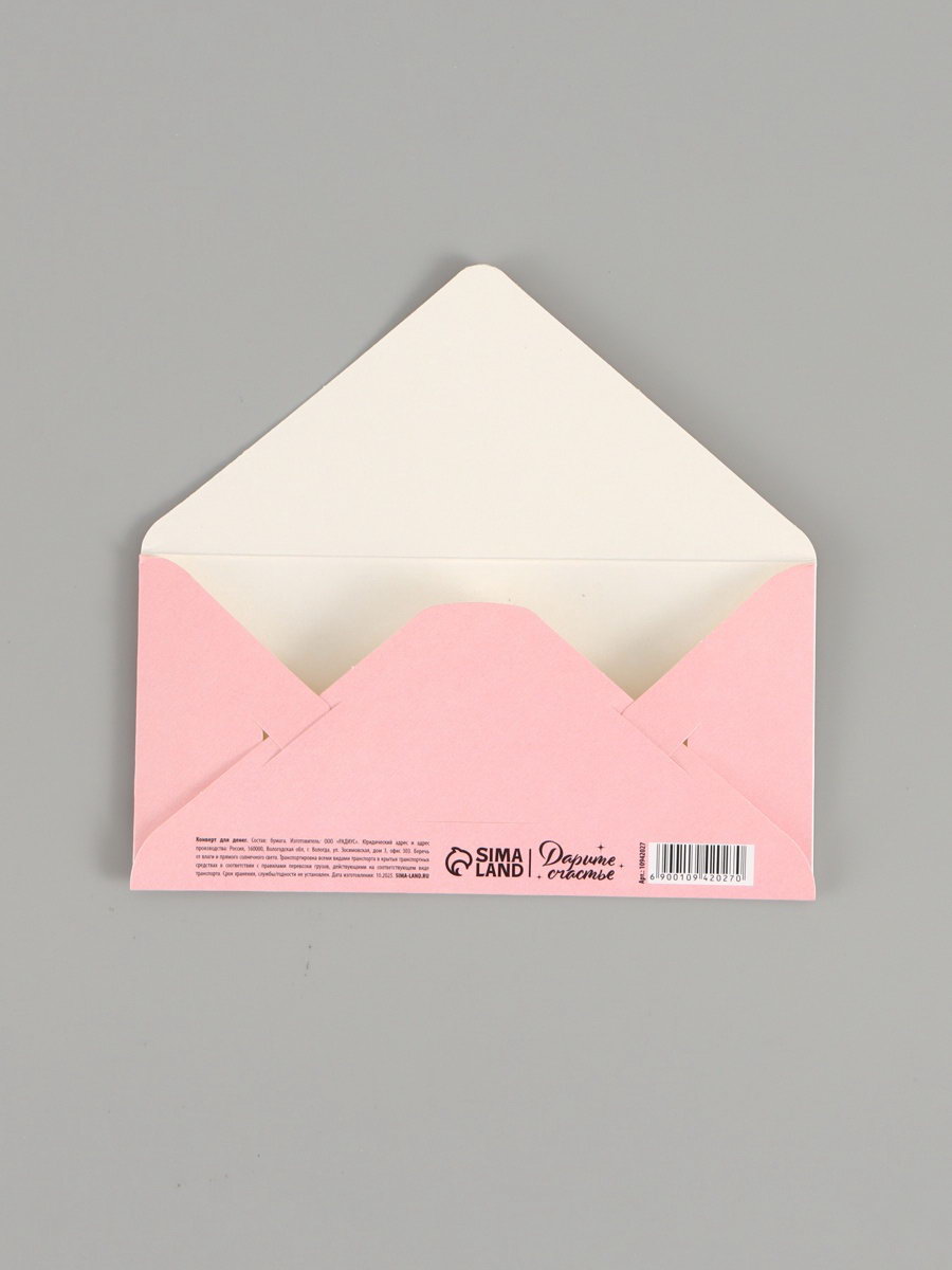 Конверт для денег "Цветы", тиснение 16.5x8 см, Дарите Счастье, Россия