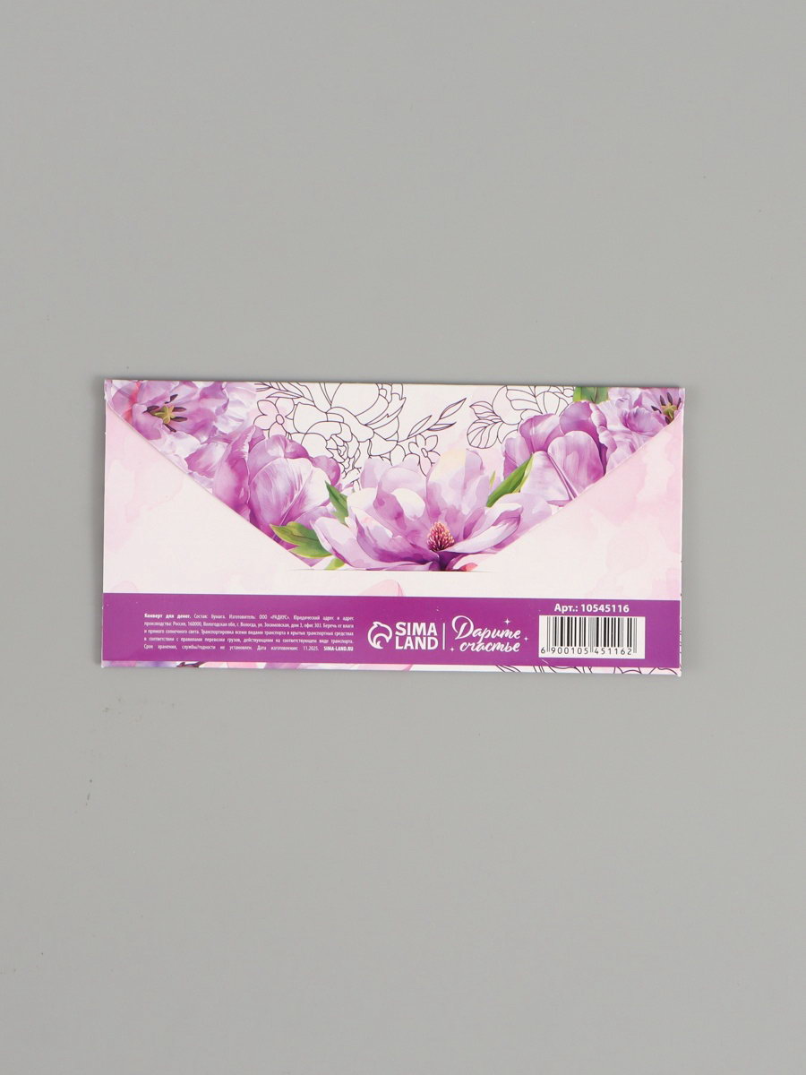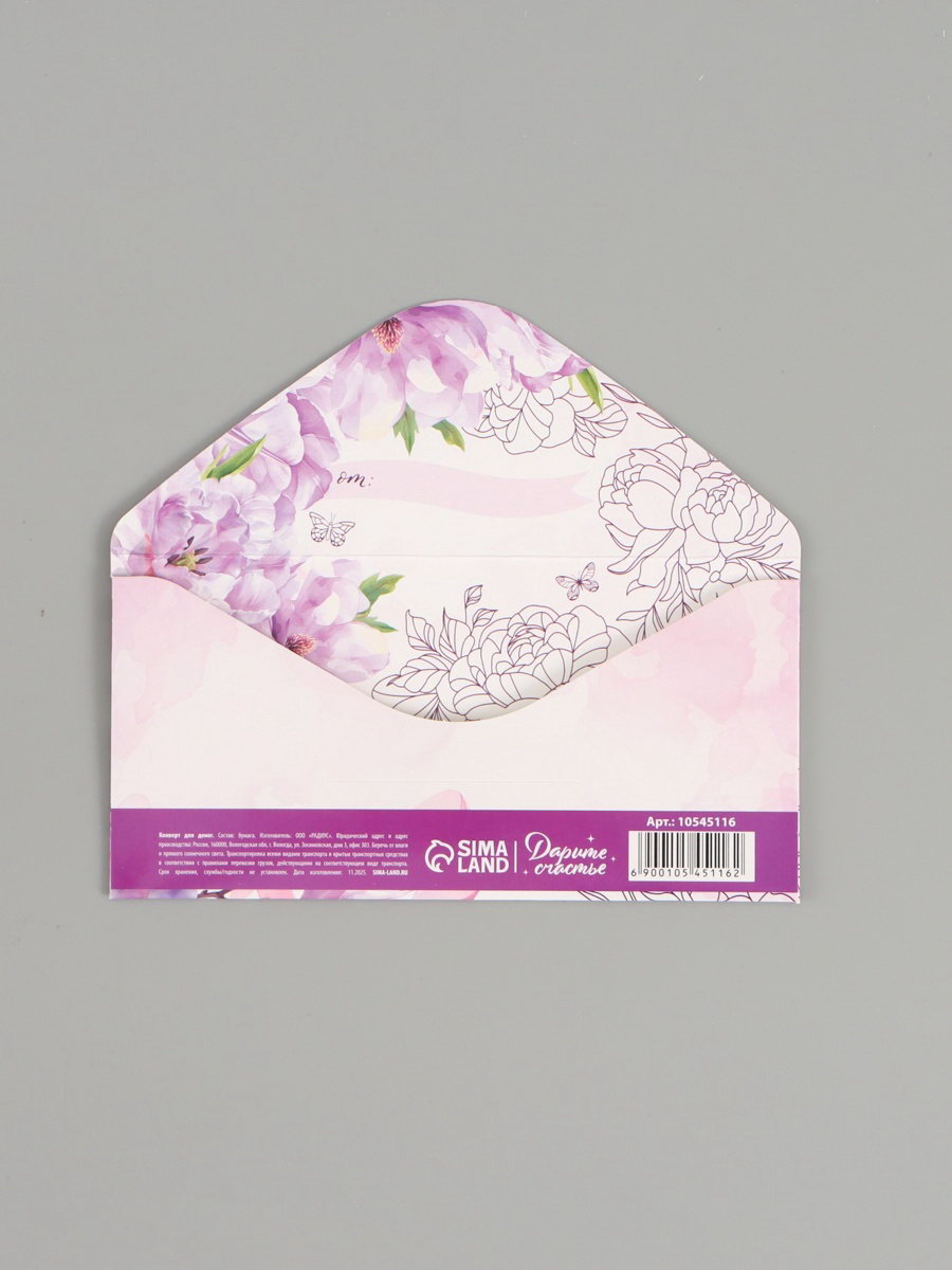 Конверт для денег "Поздравляю", нежные цветы, двусторонний, 16.5 x 8 см, Дарите Счастье, Россия