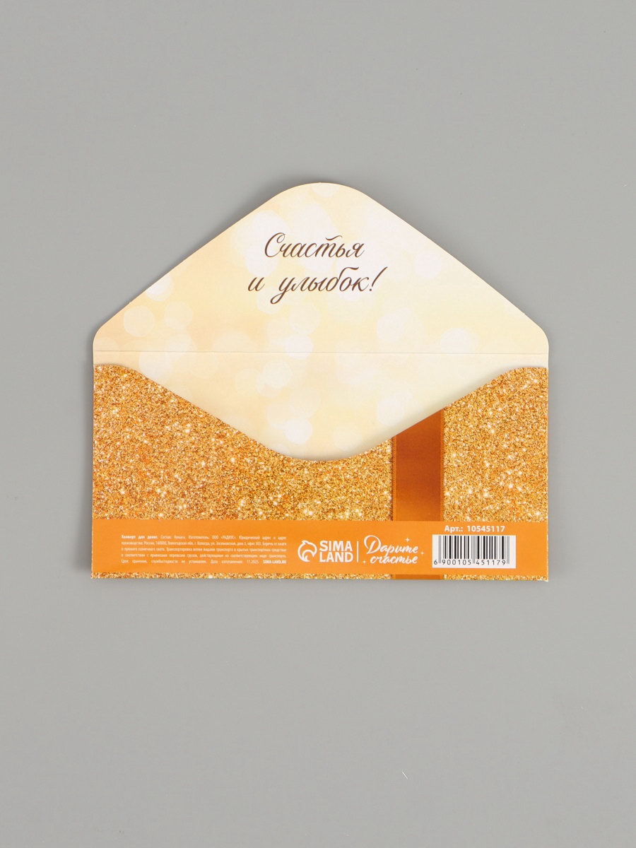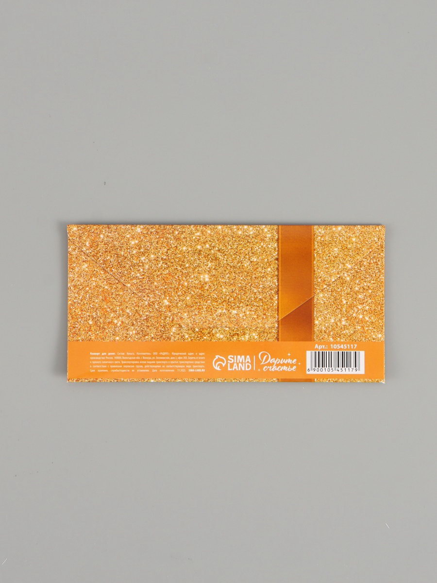 Конверт для денег "Золотой бант", двусторонний, 16.5 x 8 см, Дарите Счастье, Россия