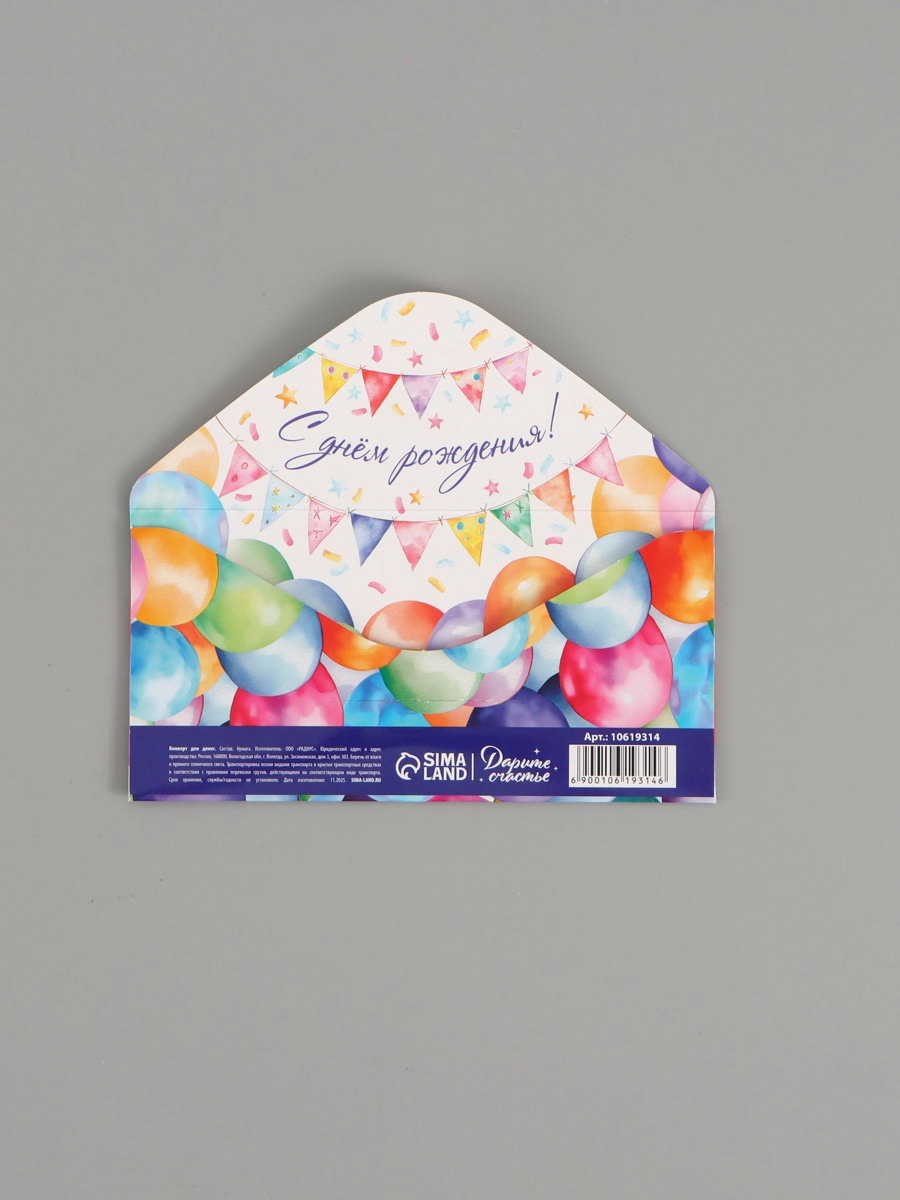 Конверт для денег "С днём рождения!", шары, двусторонний, 16.5 x 8 см, Дарите Счастье, Россия