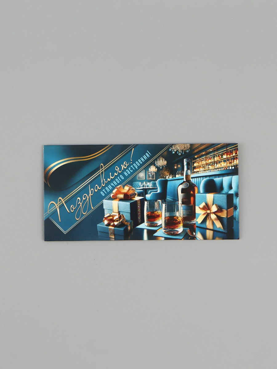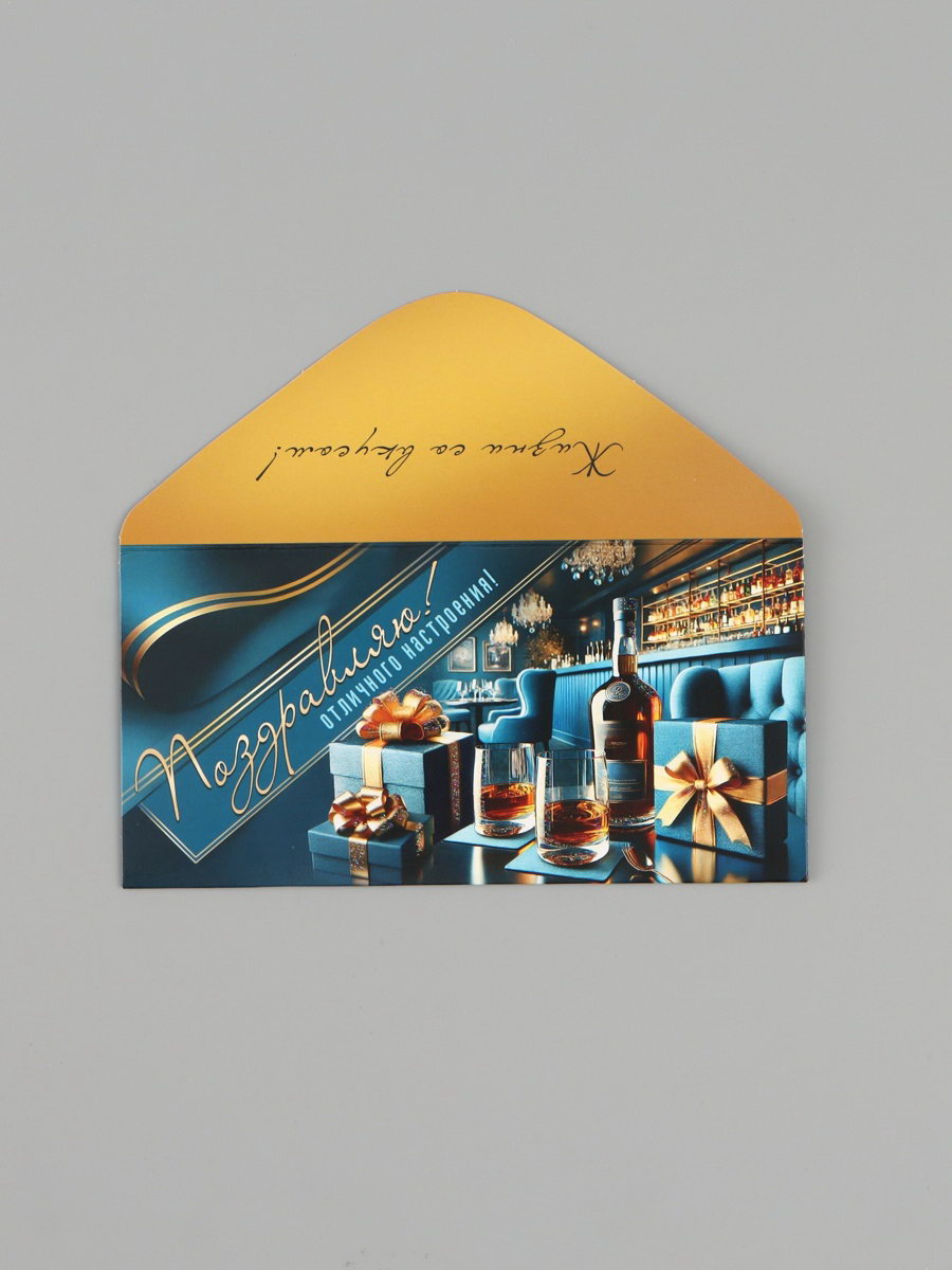 Конверт для денег "Поздравляю!", синий/бирюзовый, 16.5x8 см, Россия