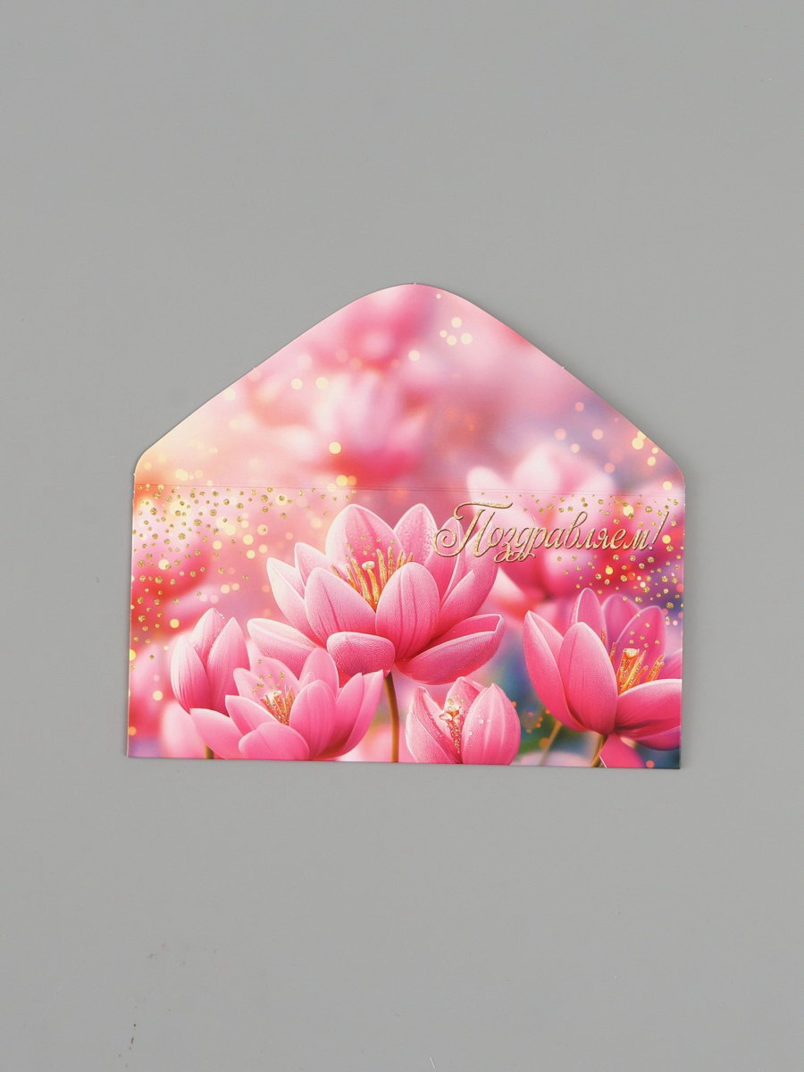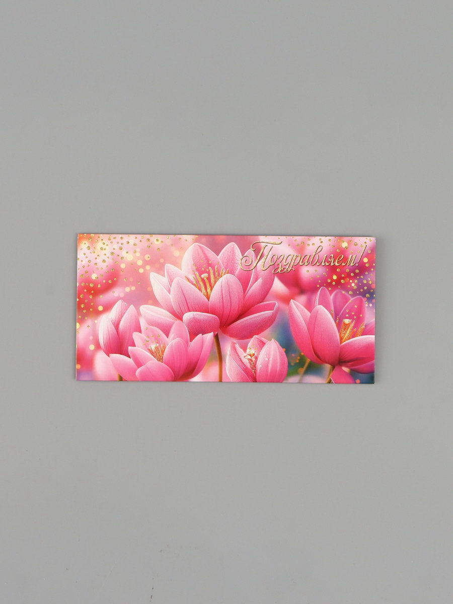 Конверт для денег "Поздравляем!", кувшинки, 16.5x8 см, Россия