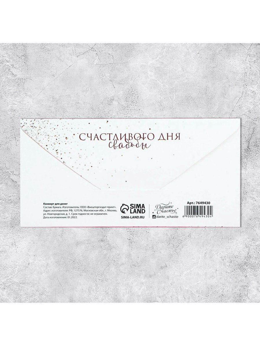 Конверт для денег "Свадебный", 16.5x8 см, Дарите Счастье, Россия