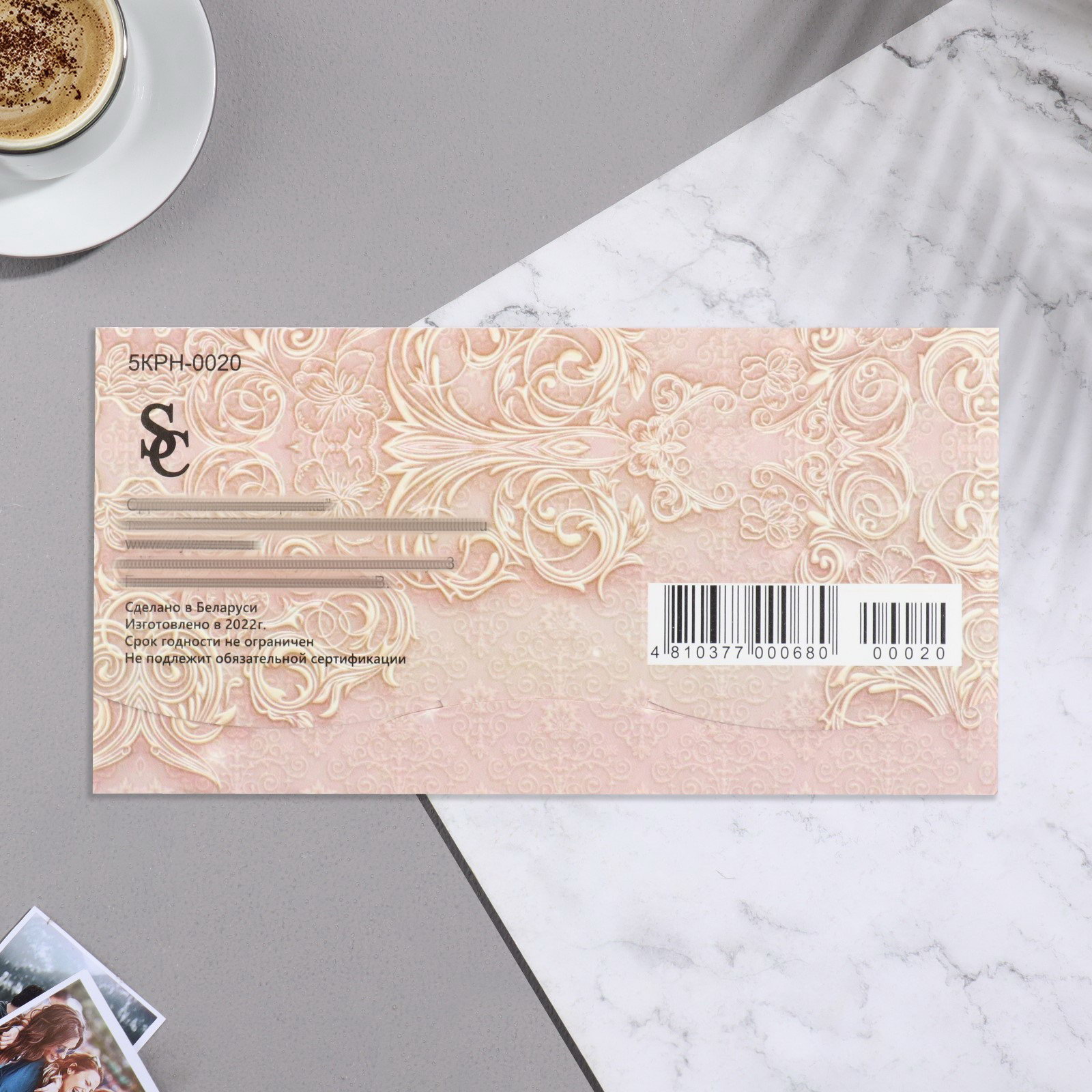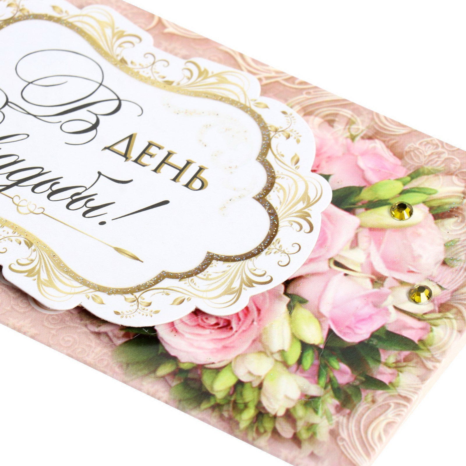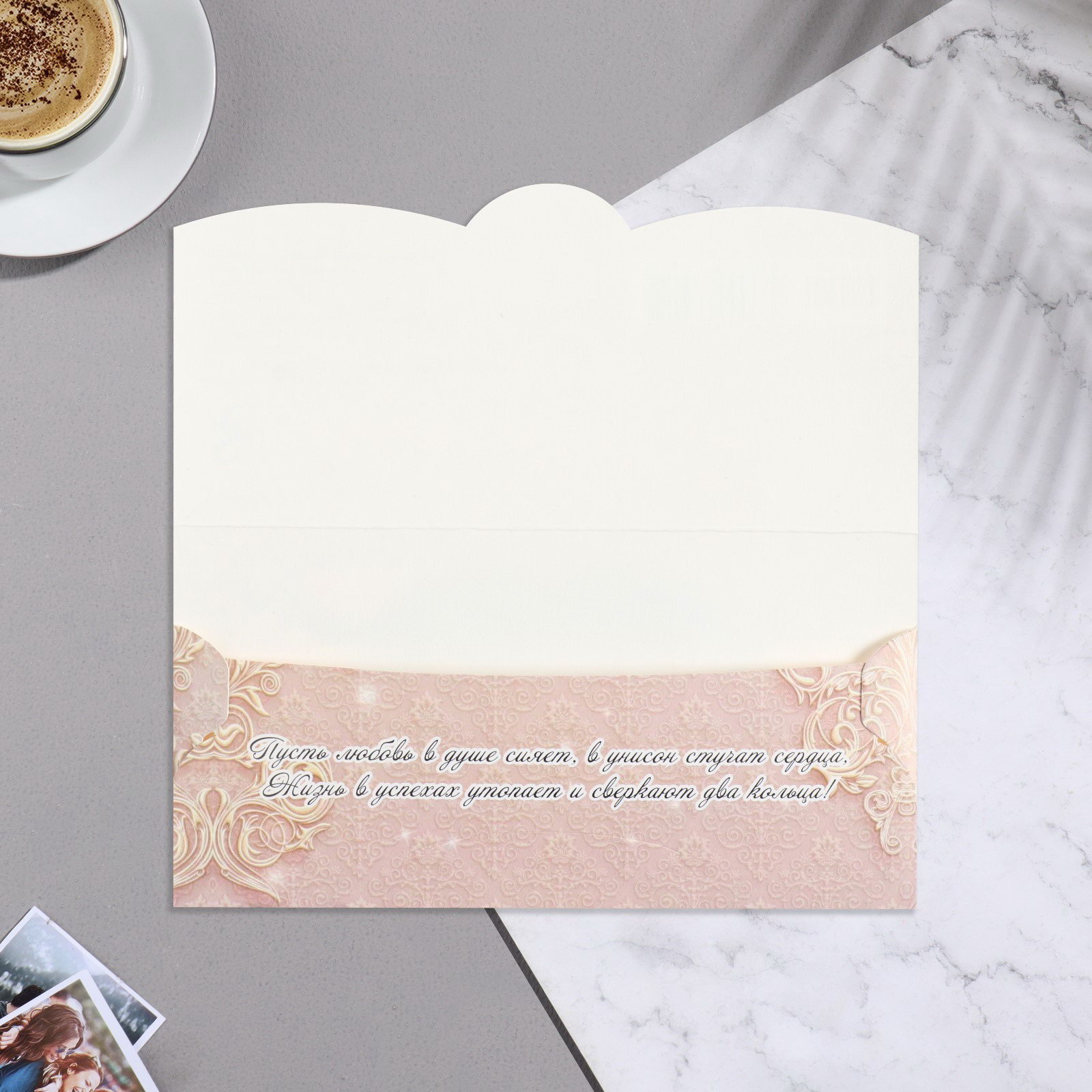 Конверт для денег "В День Свадьбы!" ручная работа, бежевый фон, 17х8.8 см, Стильная открытка, Россия