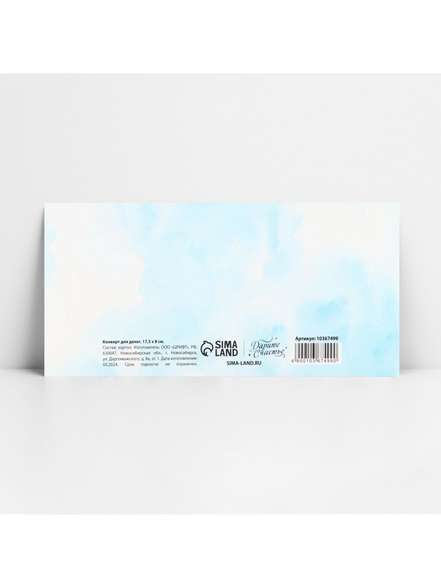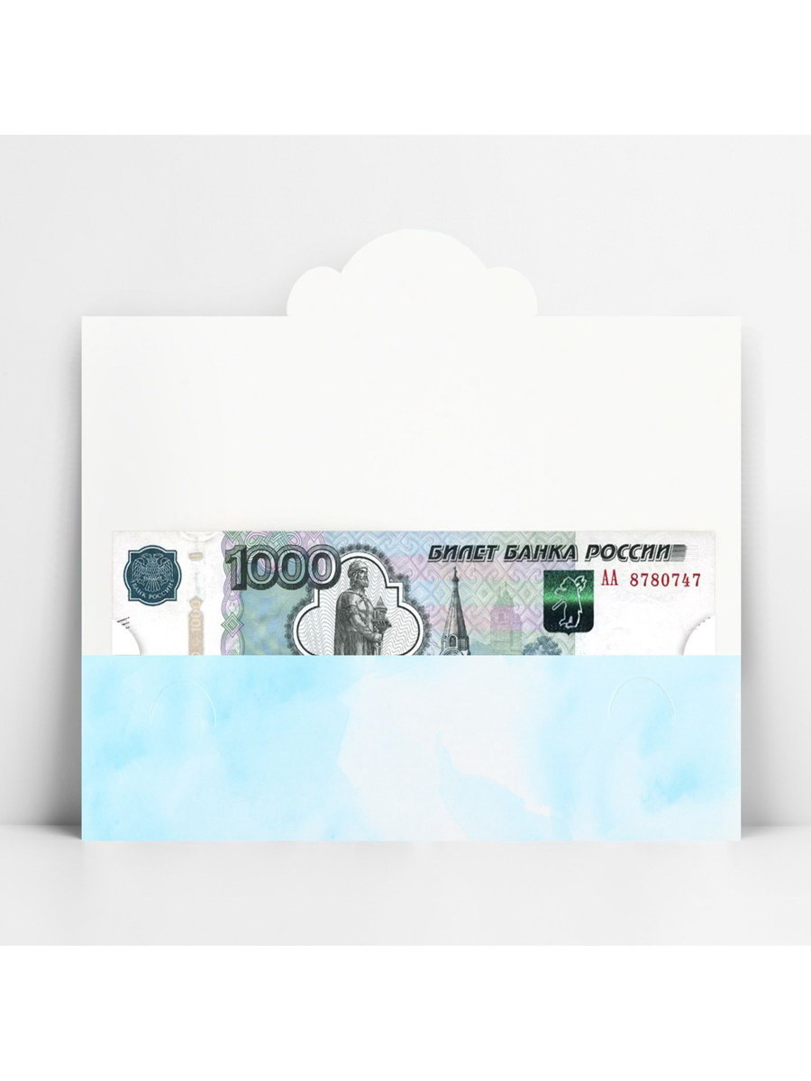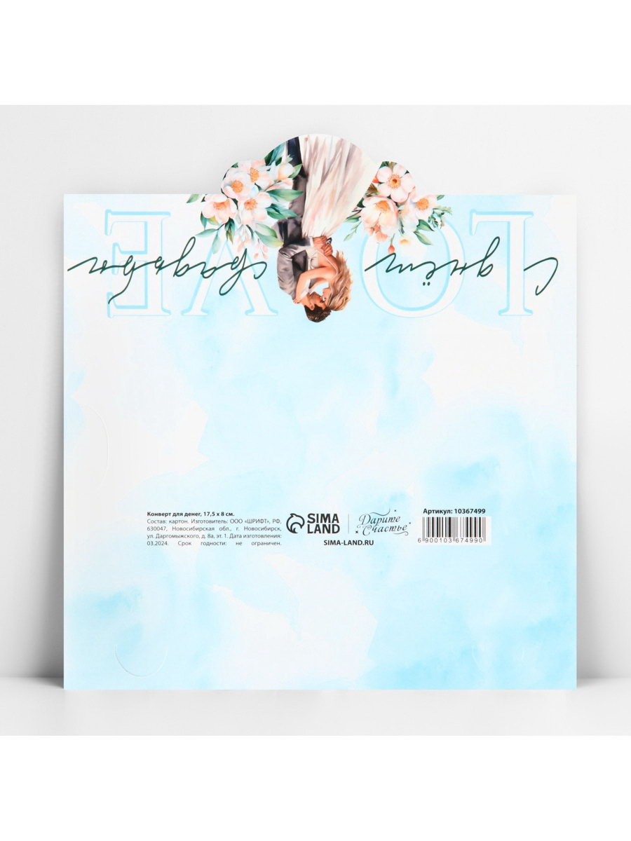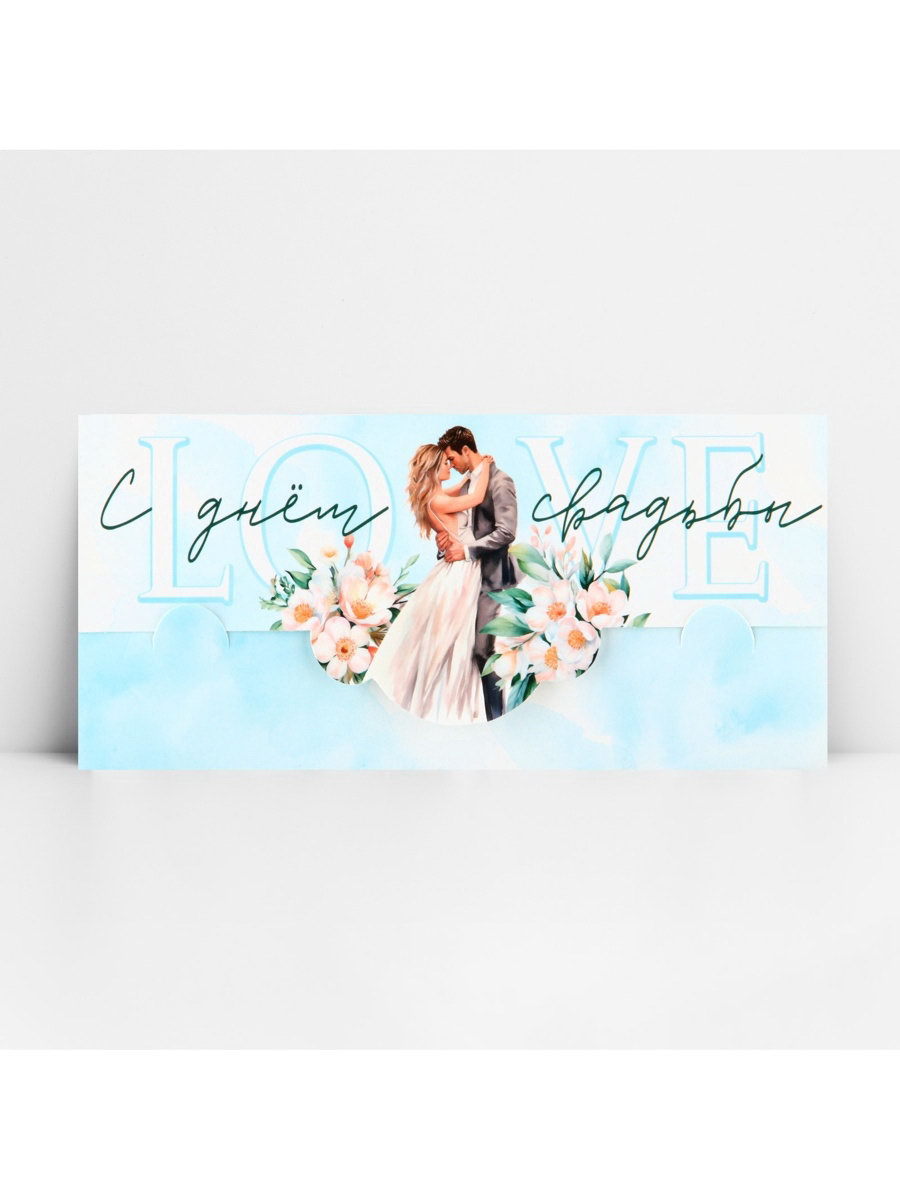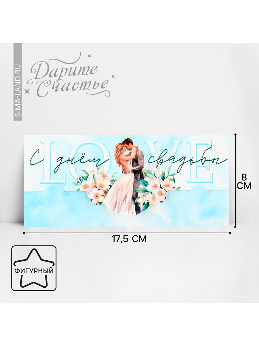 Конверт для денег формовой "С днём свадьбы", голубой, 17.5 x 8 см, Дарите Счастье, Россия