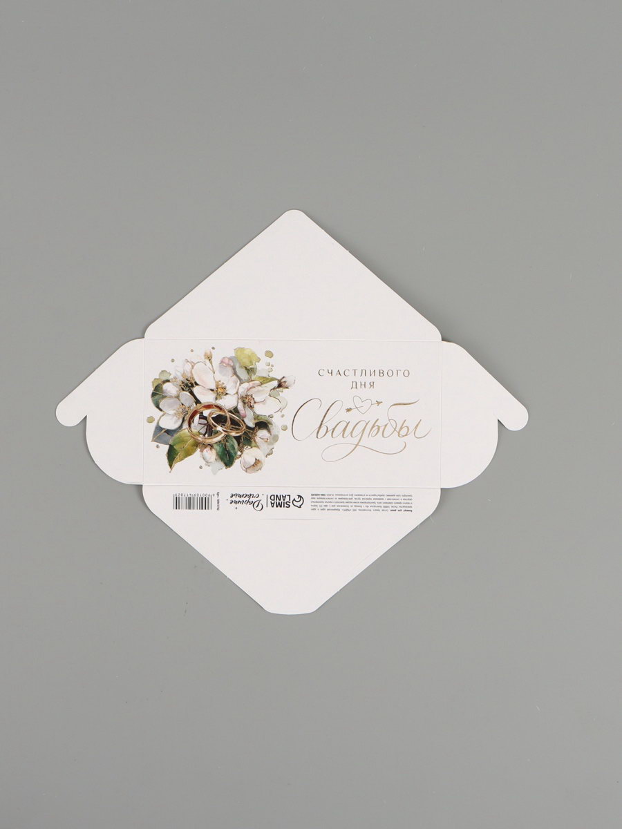 Конверт для денег "Счастливый день свадьбы", тиснение, 16.5x8 см, Дарите Счастье, Россия
