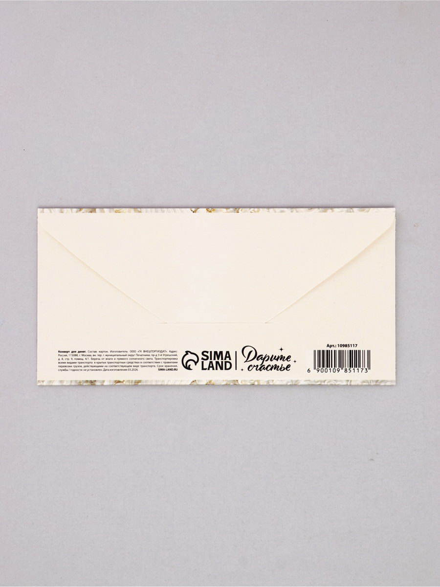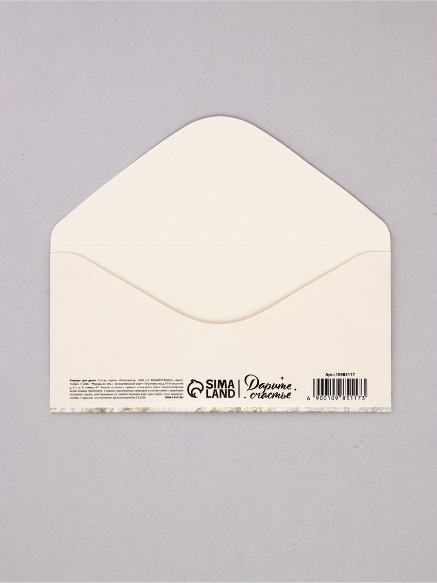 Конверт для денег "Счастливого дня свадьбы", 16.5x8 см, Дарите Счастье, Россия