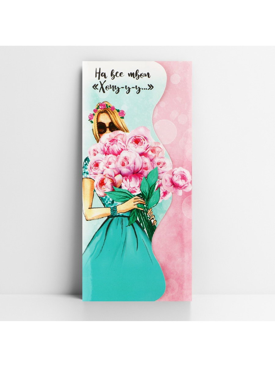 Конверт для денег "На все твои хочу" формовой, 17.5 x 8 см, Дарите Счастье, Россия