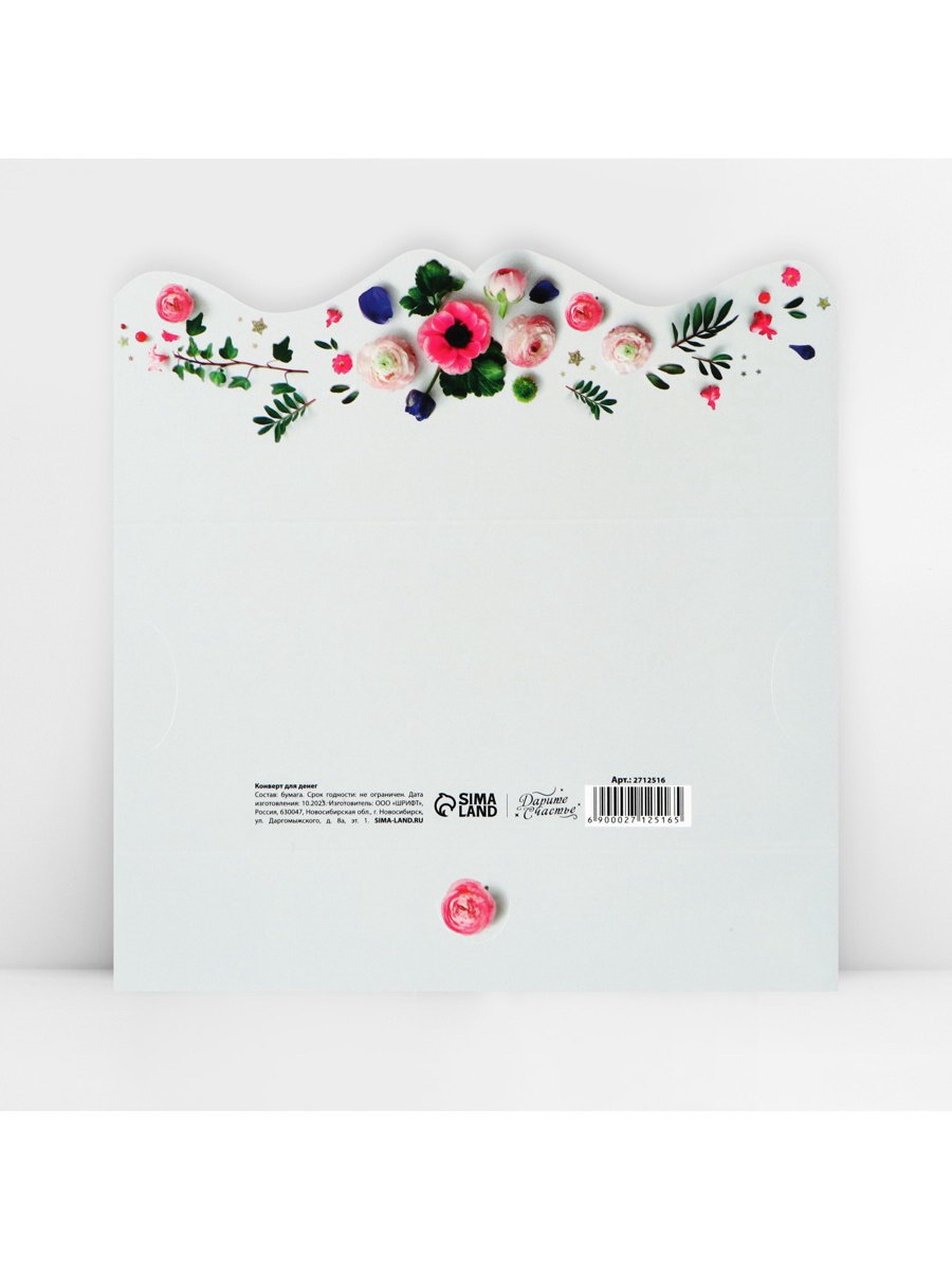 Конверт для денег "Настоящие цветы" фигурный, 17.5 x 8 см, Дарите Счастье, Россия