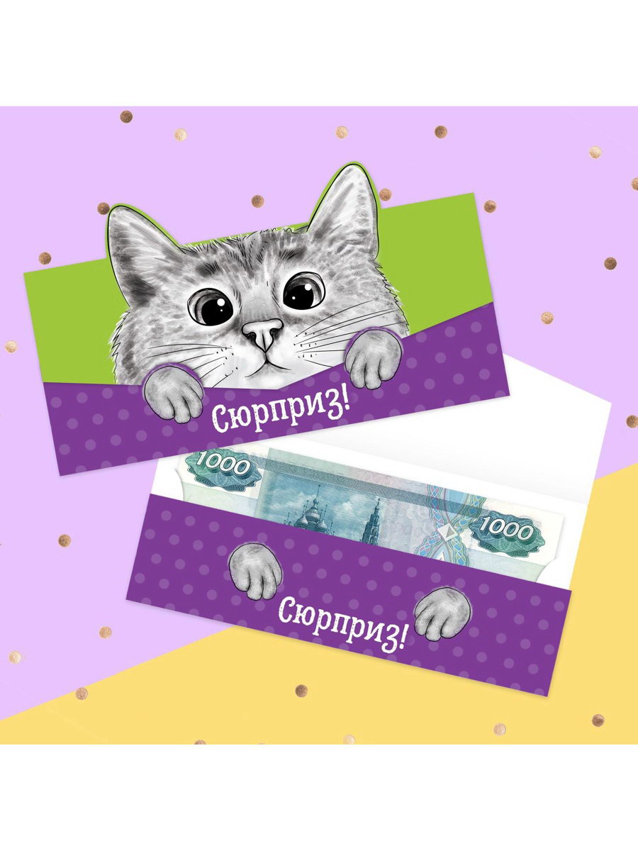 Конверт для денег фигурный "Кот", 17.5 x 8 см, 0.2x17.5x10 см., Дарите Счастье, Китай