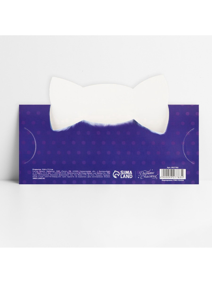 Для кого: Для девочки, Для мальчика Цвет: Серый, Фиолетовый Размер упаковки: 17.5 x 21 x 0.1 см. Тематика праздника: Универсальная тематика Отделка: Фигурная вырубка Адресат: Без адресата Тематика: Животный мир Особенности: Фигурные Плотность, г/?2: 190 Размер, см: 8 x 17.5 tnved: 4909000000 | ||
