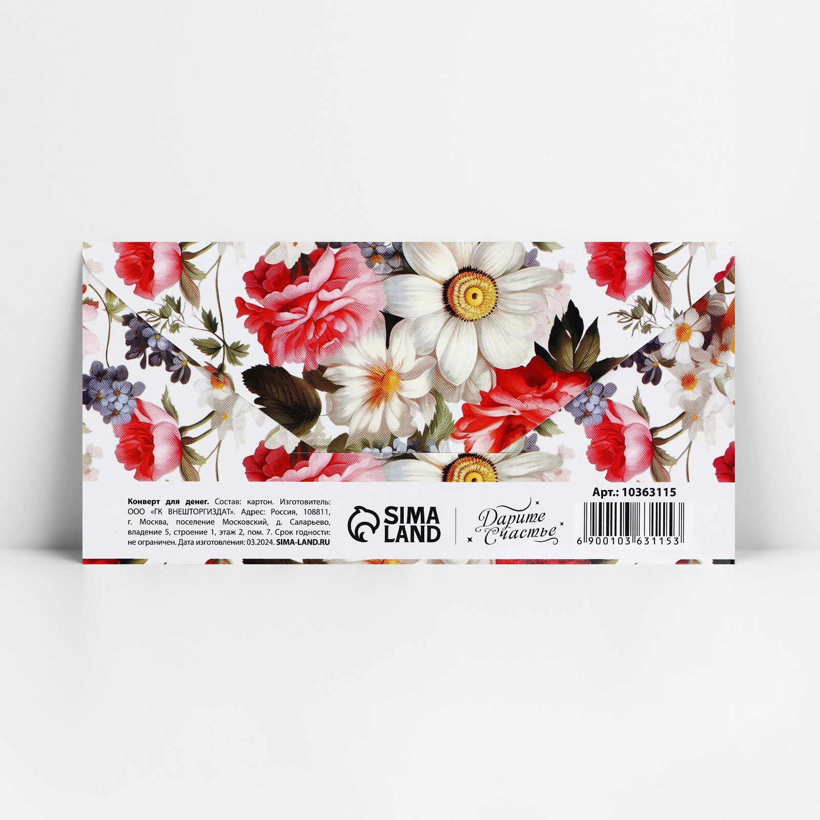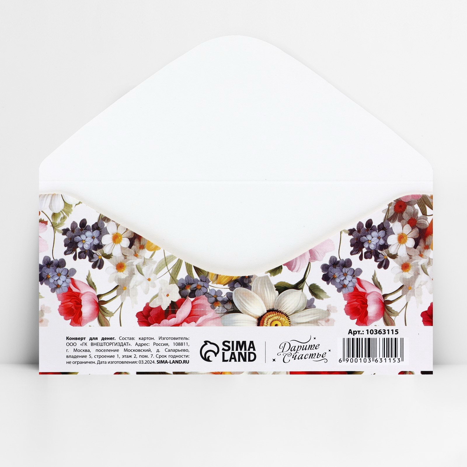 Конверт для денег "Цветы", 16.5x8 см, Дарите Счастье, Россия