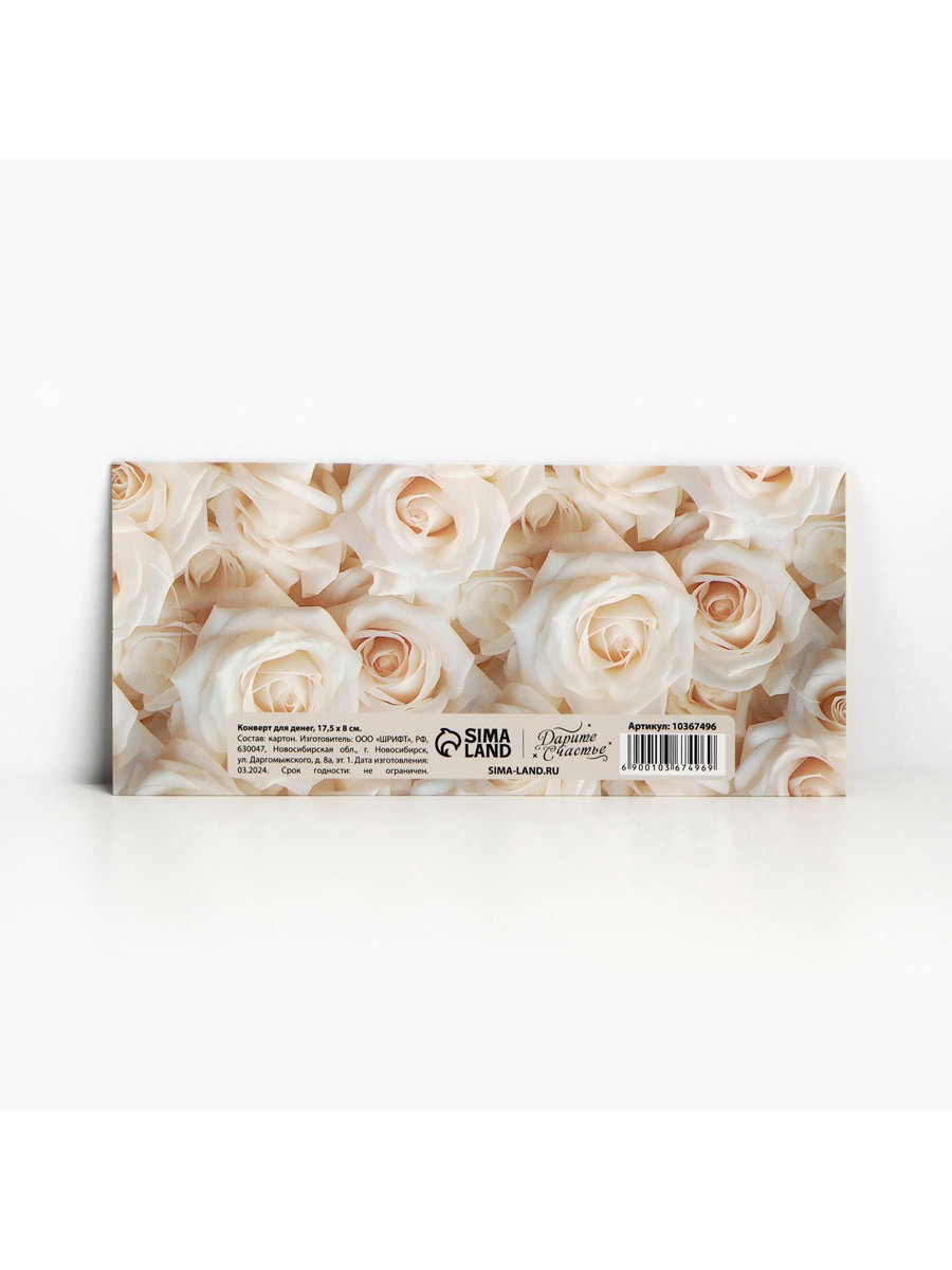 Конверт для денег фигурный "Белые розы", 17.5x8 см, Дарите Счастье, Россия