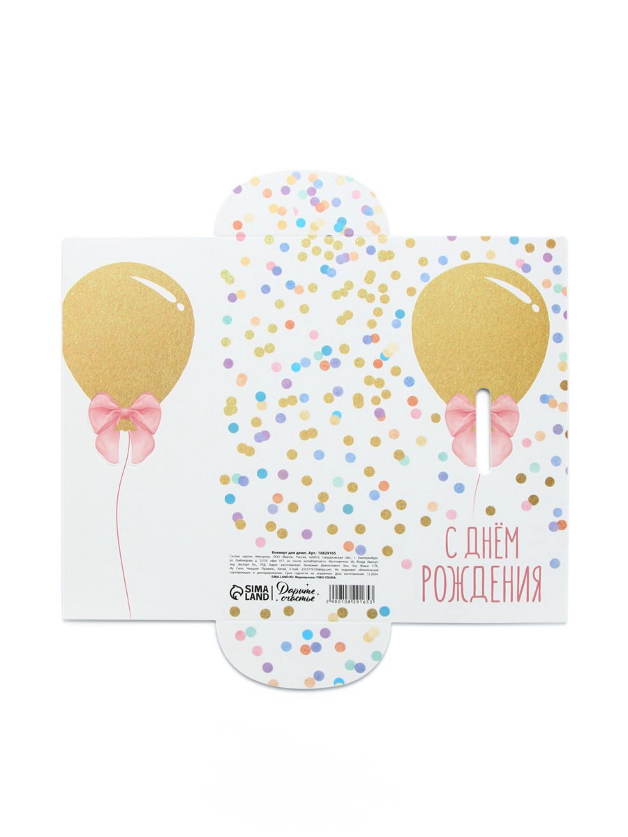 Конверт для денег "С Днём рождения", 16.5x8 см, 8x16.5x0.1 см., Дарите Счастье, Китай