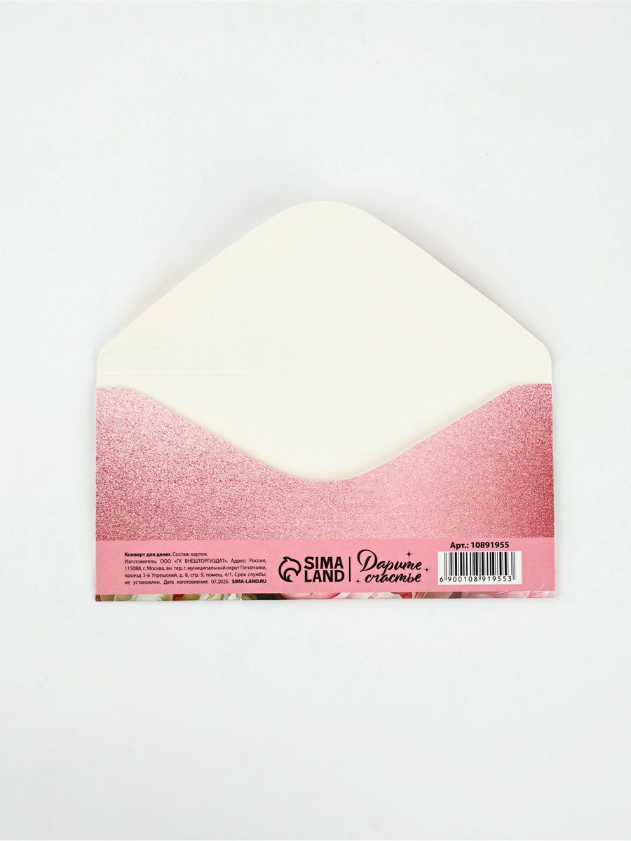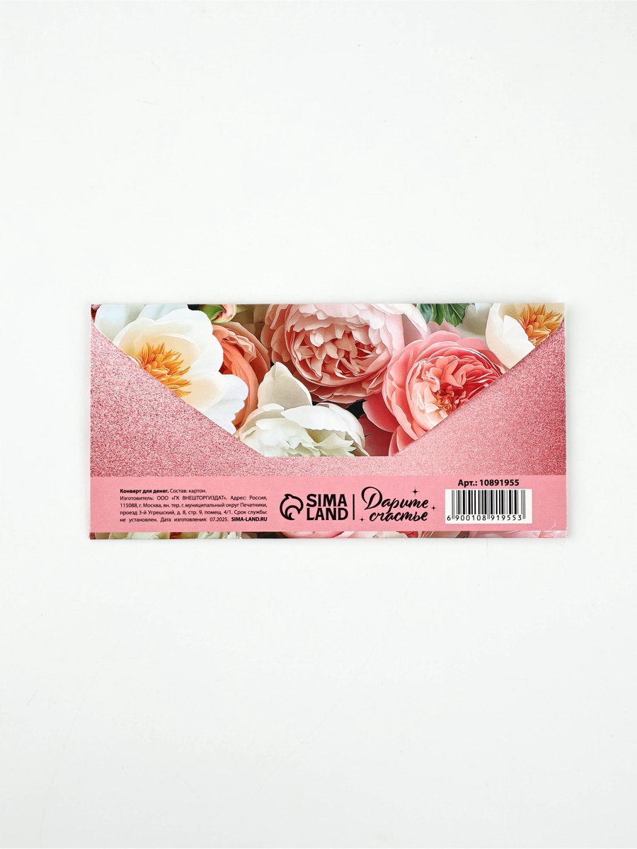 Конверт для денег "Пионы", 16.5x8 см, Дарите Счастье, Россия