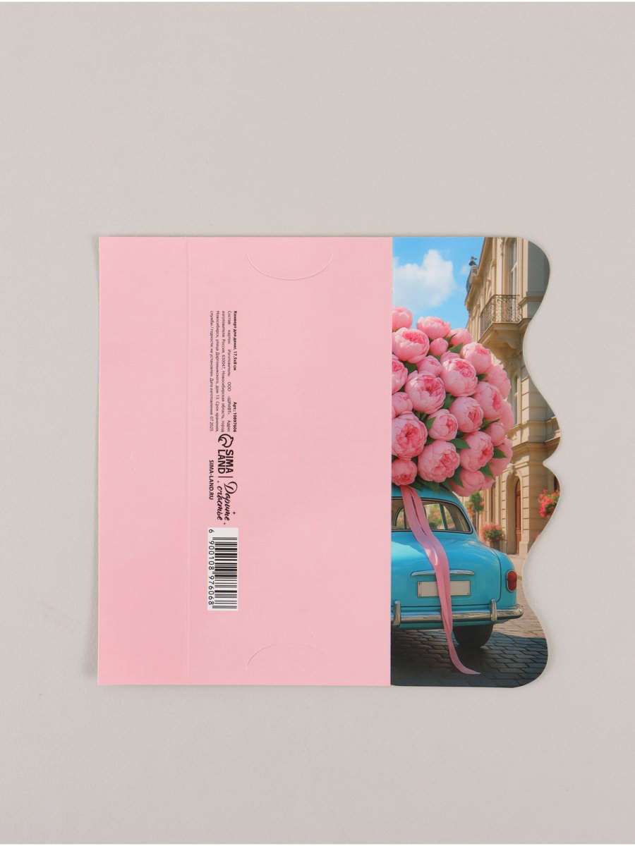 Конверт для денег фигурный "Пионы", 17.5x8 см, Дарите Счастье, Россия