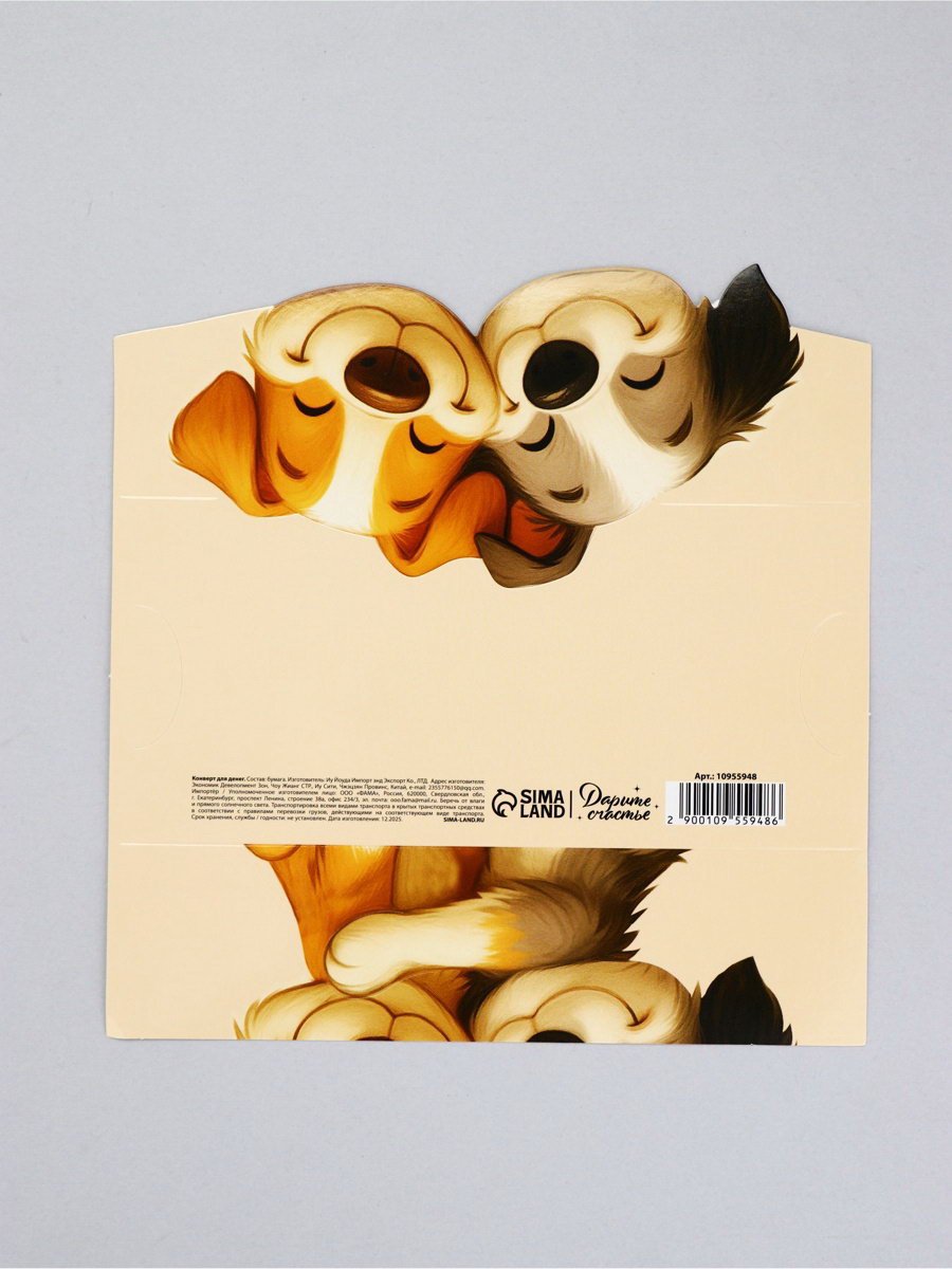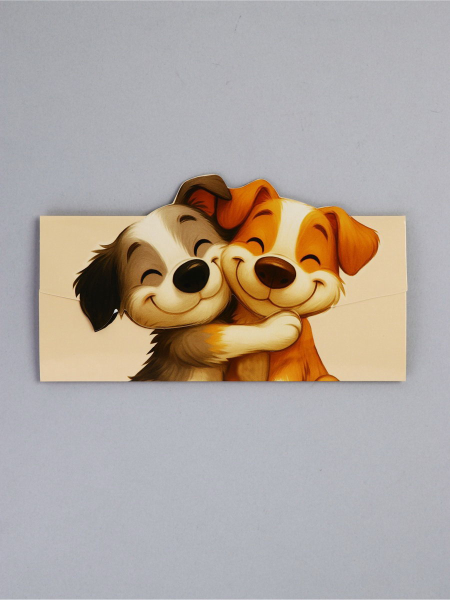 Конверт для денег формовой "Пёсики", 17.5 х10см, 10x17.5x0.1 см., Дарите Счастье, Китай