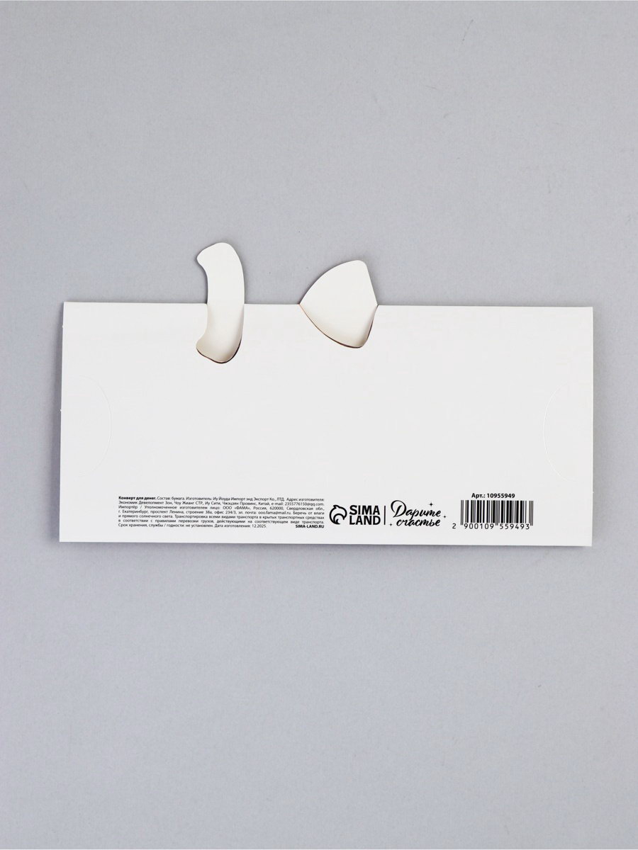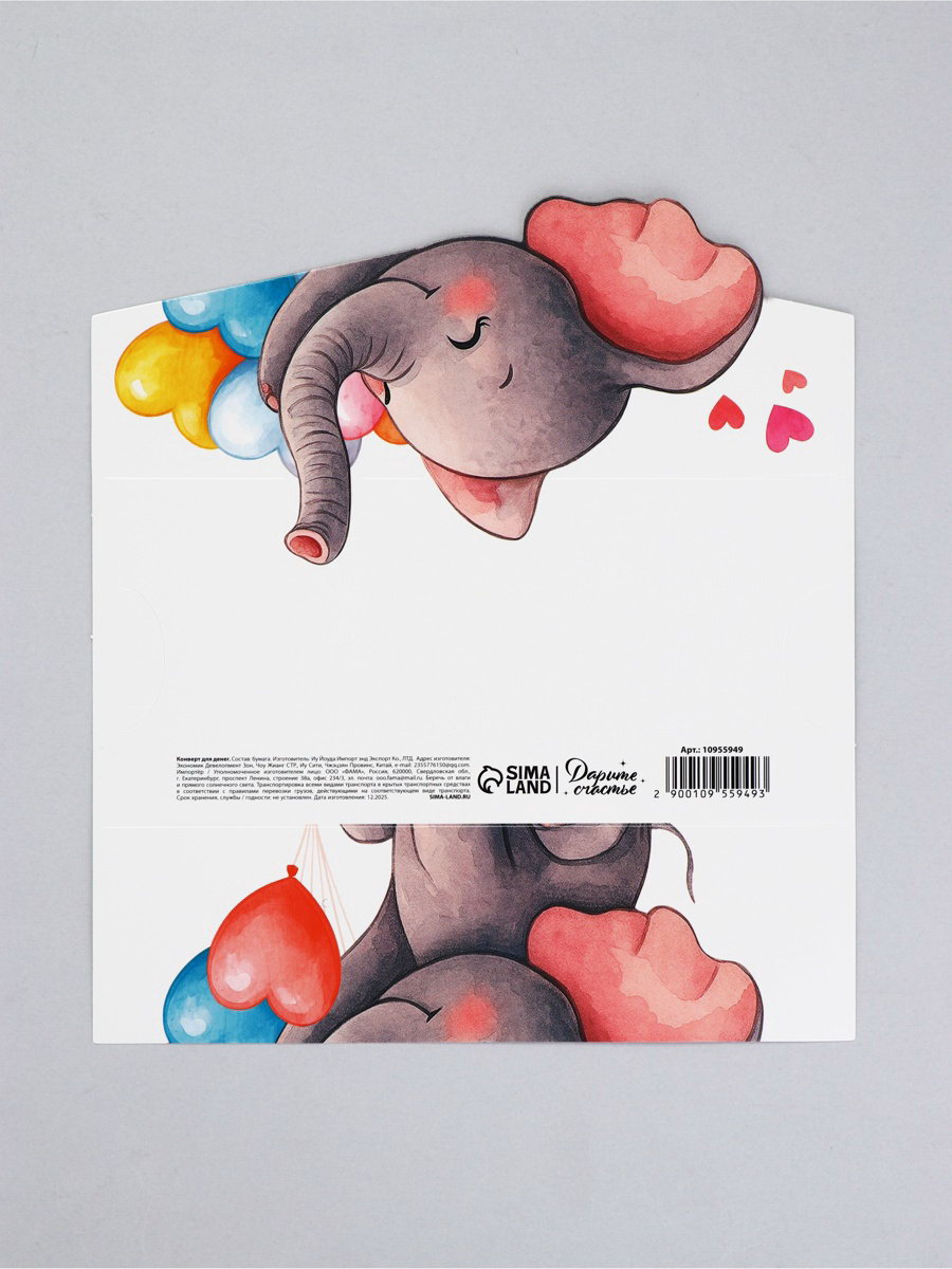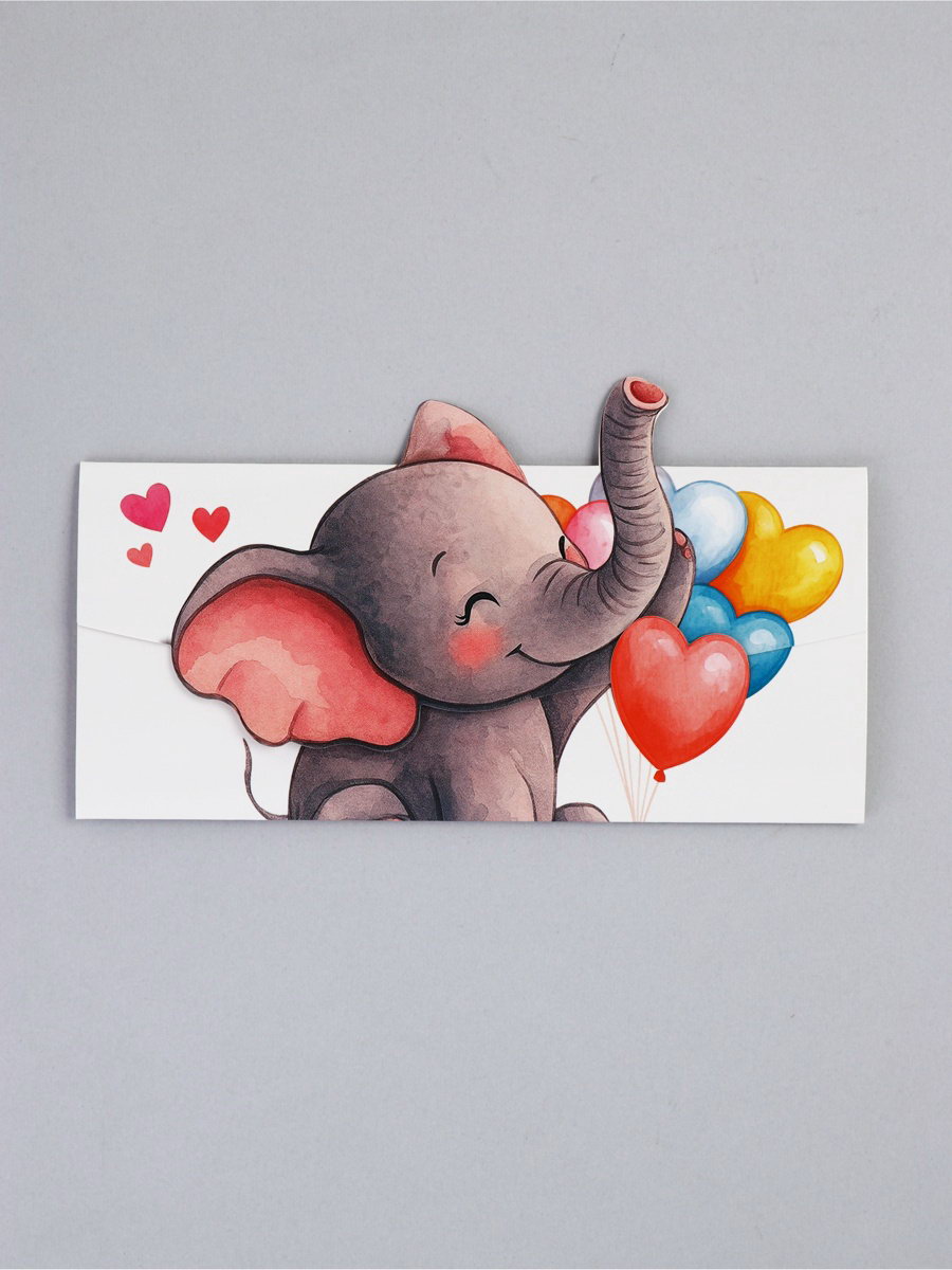 Конверт для денег формовой "Слоник", 17.5 х10см, 10x17.5x0.1 см., Дарите Счастье, Китай