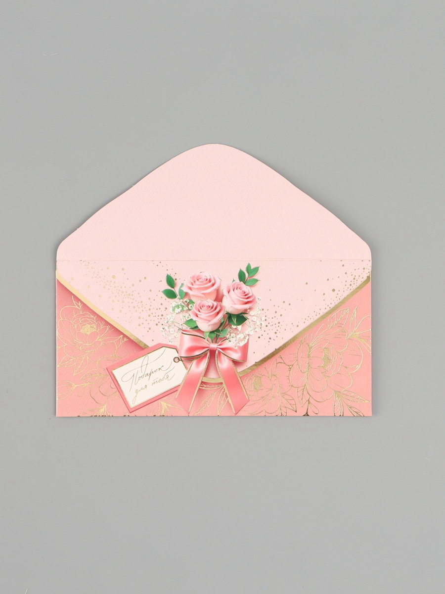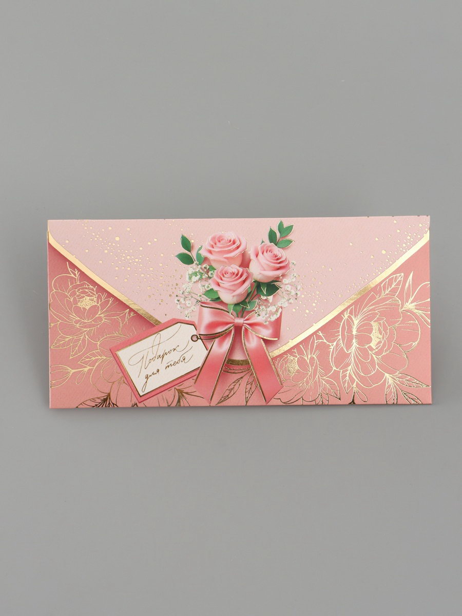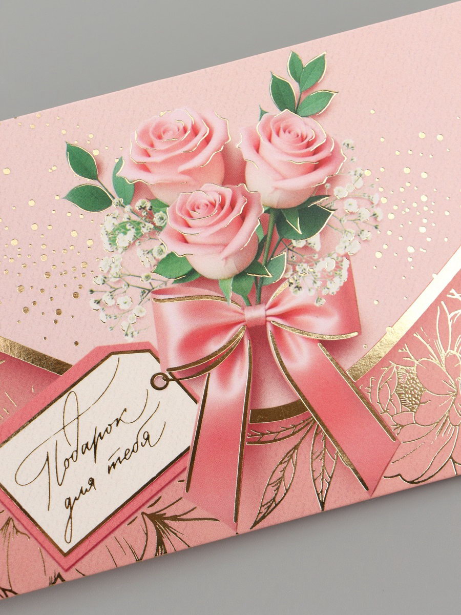 Конверт для денег "Подарок для тебя", три розы, 16.5x8 см, Россия