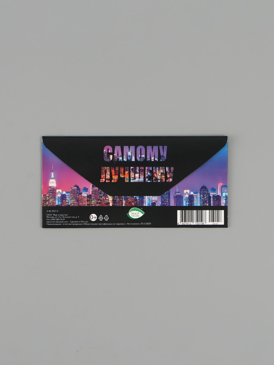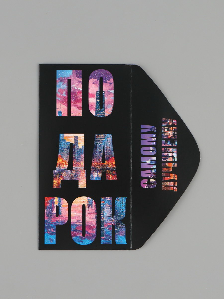 Конверт для денег "Подарок", чёрный/синий, 16.5x8 см, Россия