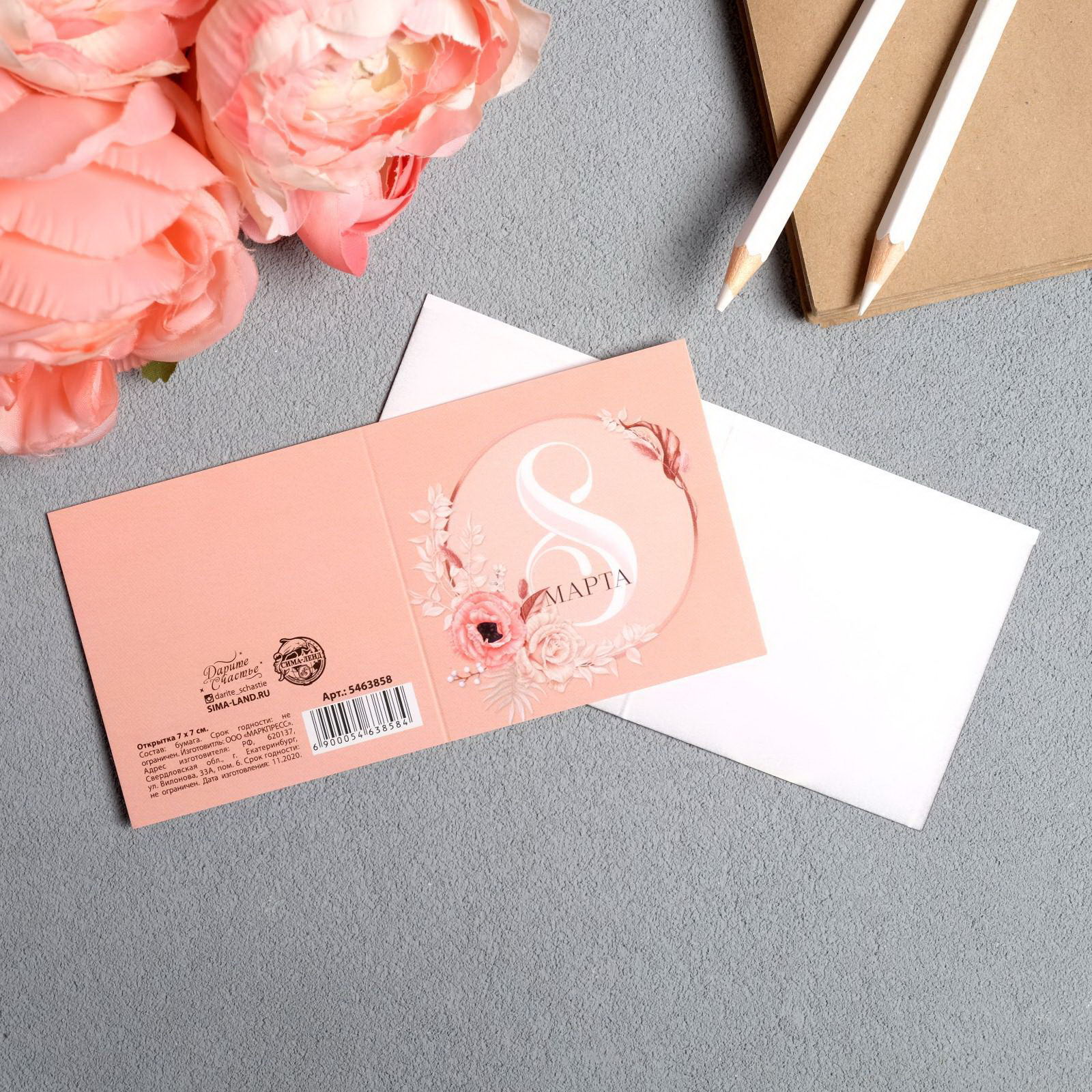 Открытка-мини "8 марта", розовые цветы, 7 x 7см, Дарите Счастье, Россия