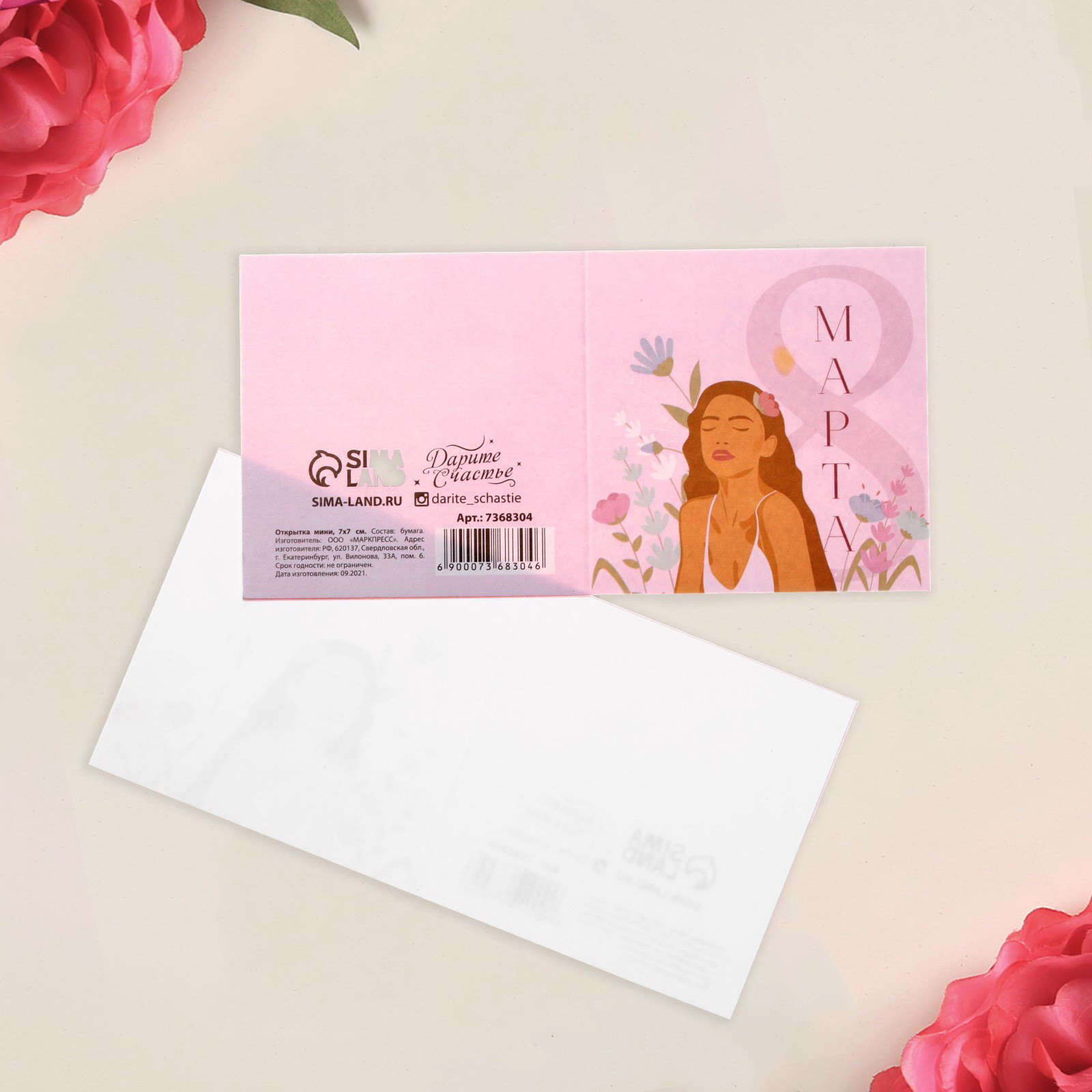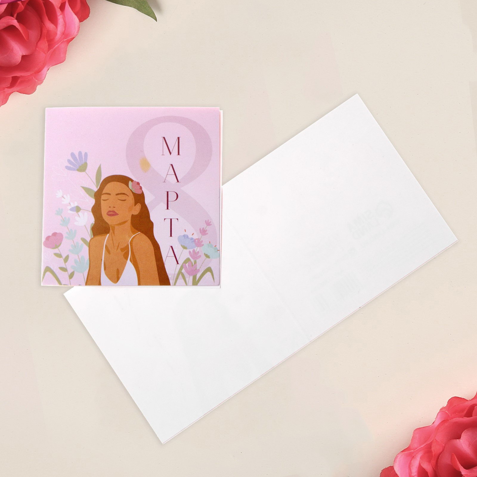Открытка-мини "С 8 Марта!", девушка, 7 x 7 см, Дарите Счастье, Россия