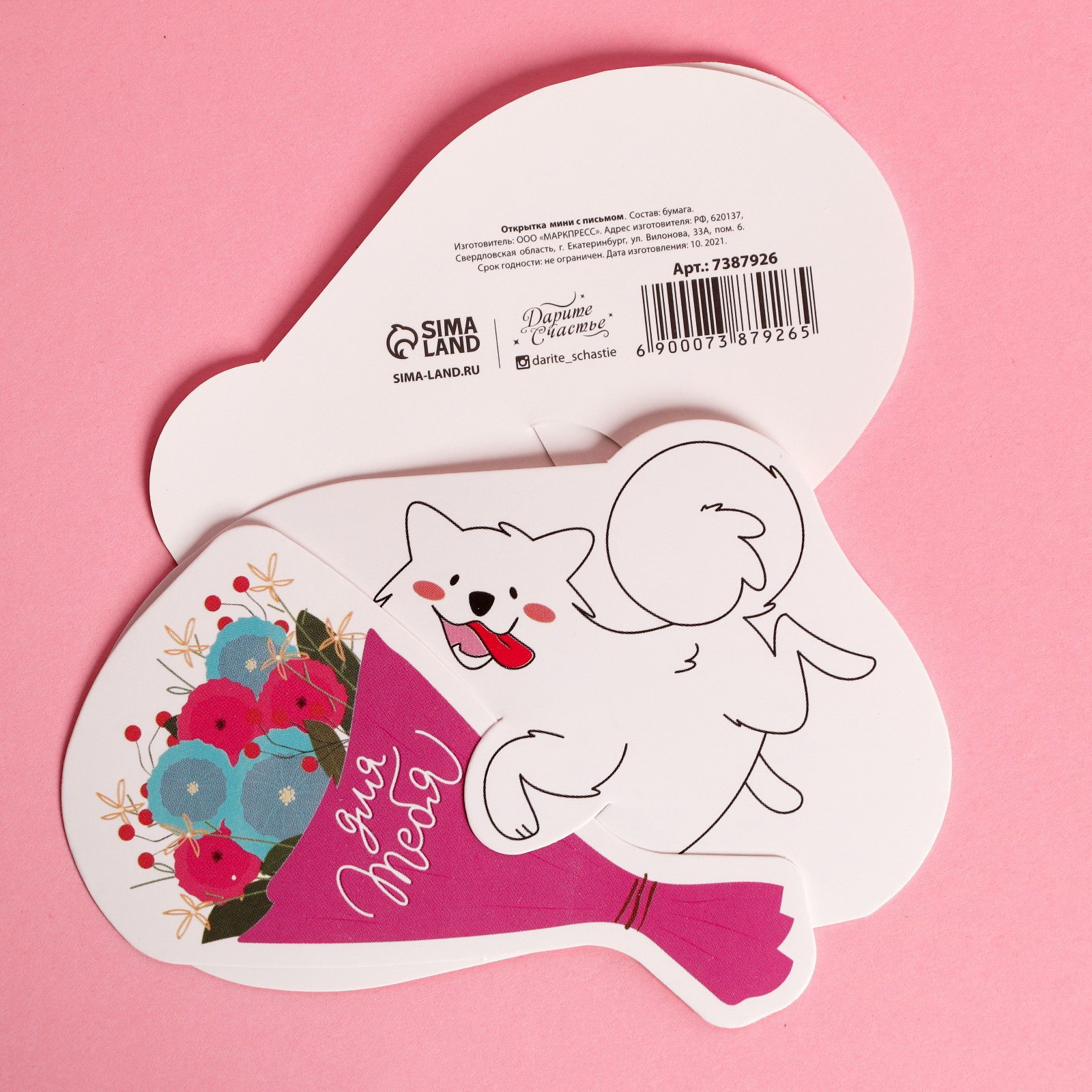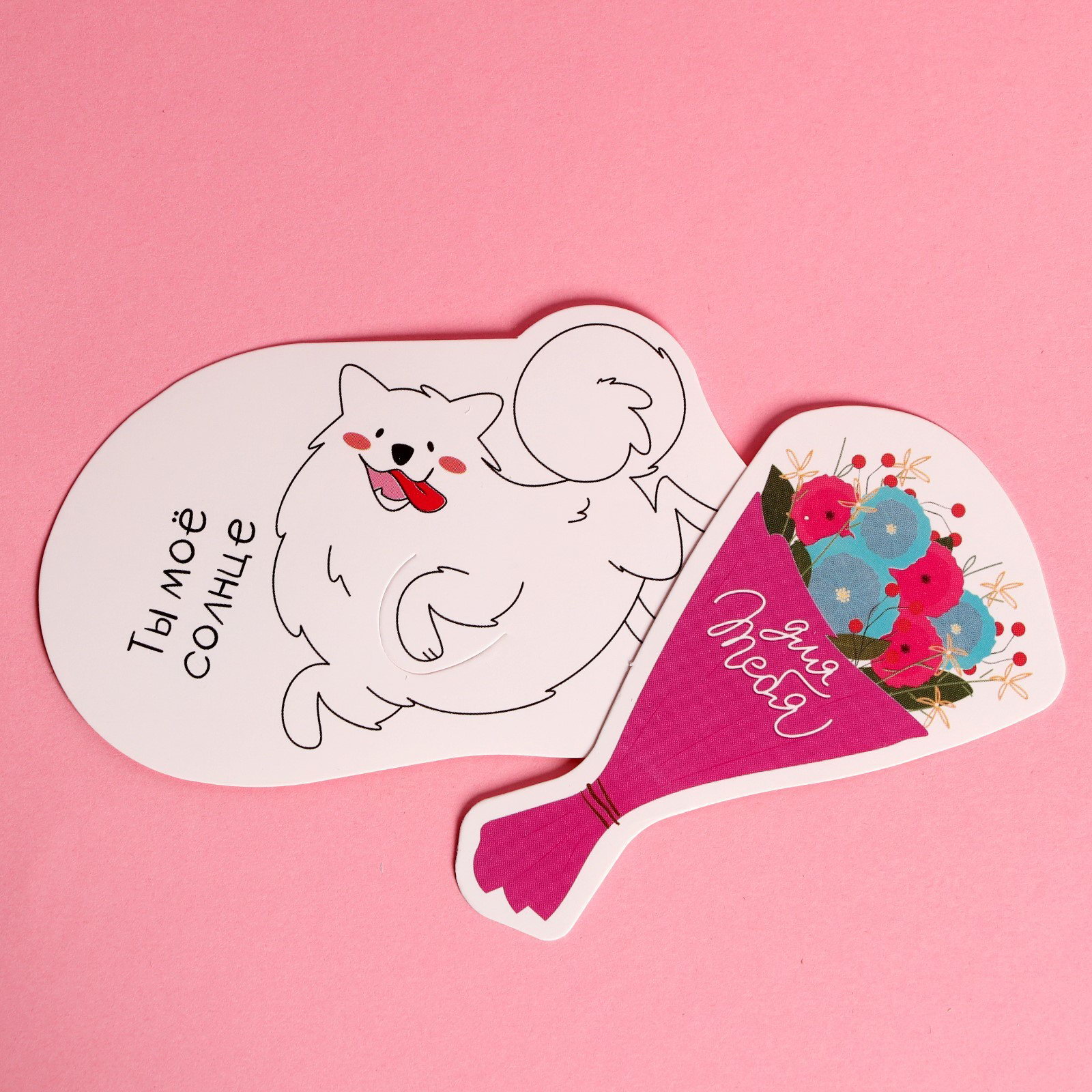 Открытка-мини с письмом "Ты мое солнце", пес, 10 x 9 см, Дарите Счастье, Россия
