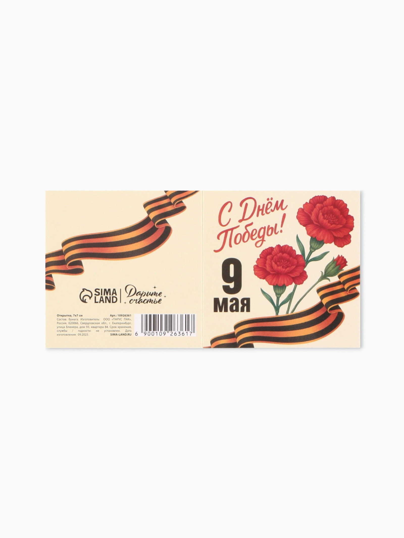 Открытка мини "9 мая", 7x7 см, Дарите Счастье, Россия