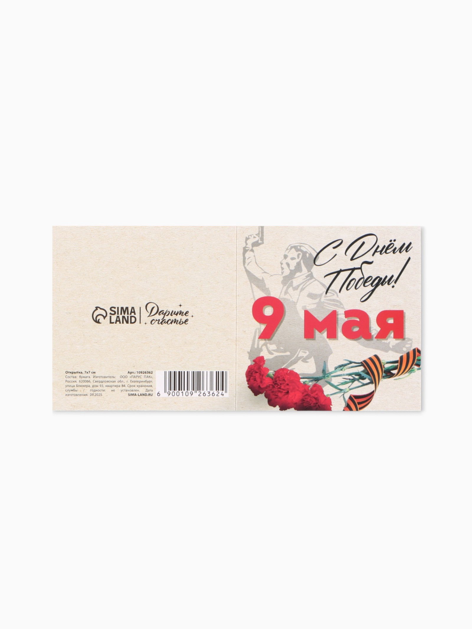 Размер упаковки: 7 x 0.1 x 7 см. tnved: 4909000000 Тематика праздника: 9 Мая Отделка: Без отделки Размер: Мини (до 8 см) см Форма: Квадрат Особенности: Без особенностей | ||
