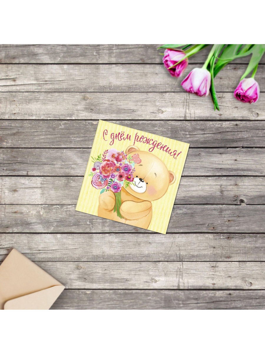 Открытка мини "С Днём Рождения", 7x7 см, Дарите Счастье, РОССИЯ