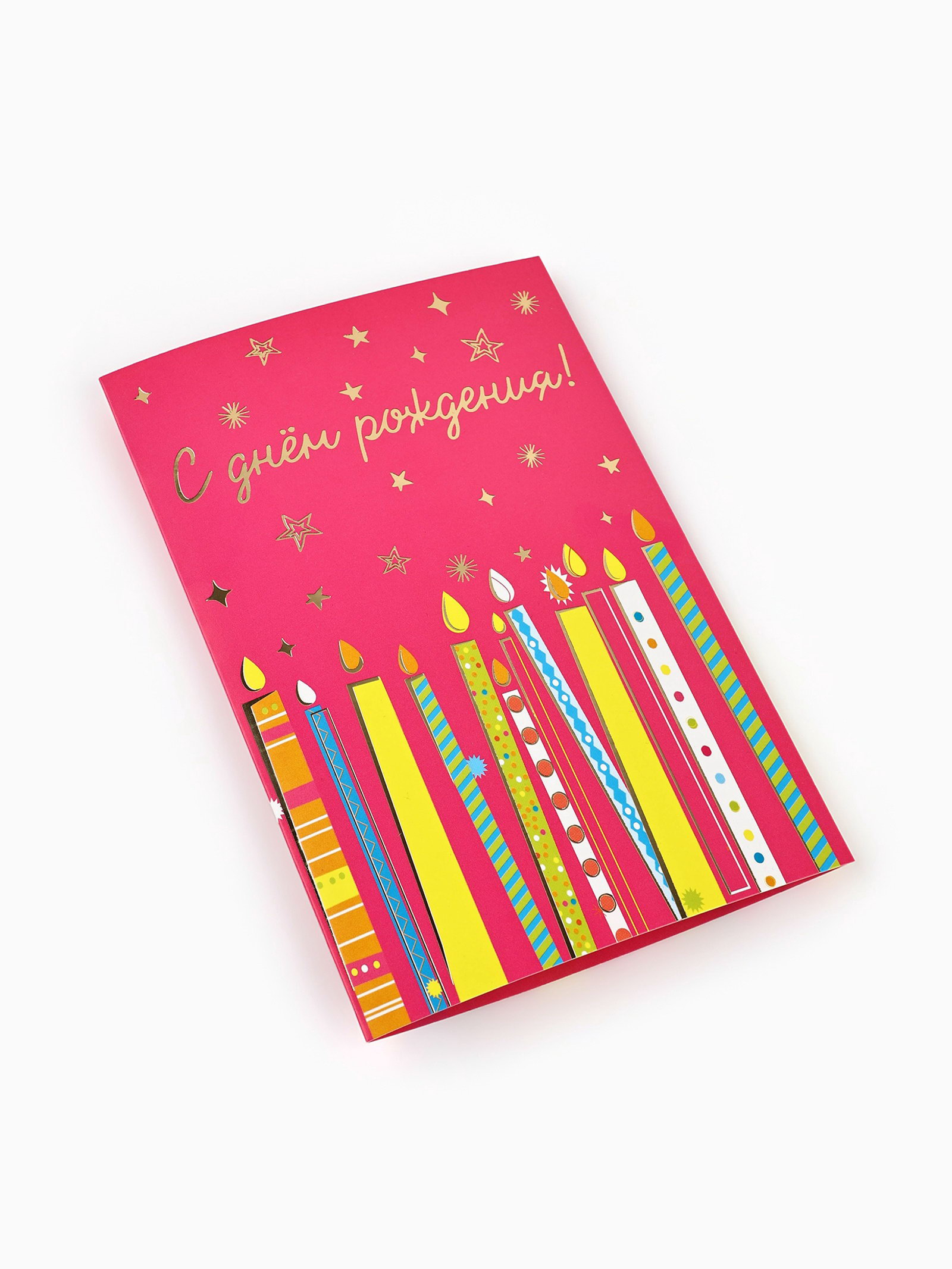 Открытка "С днём рождения", тиснение, 12x18 см, Дарите Счастье, Россия