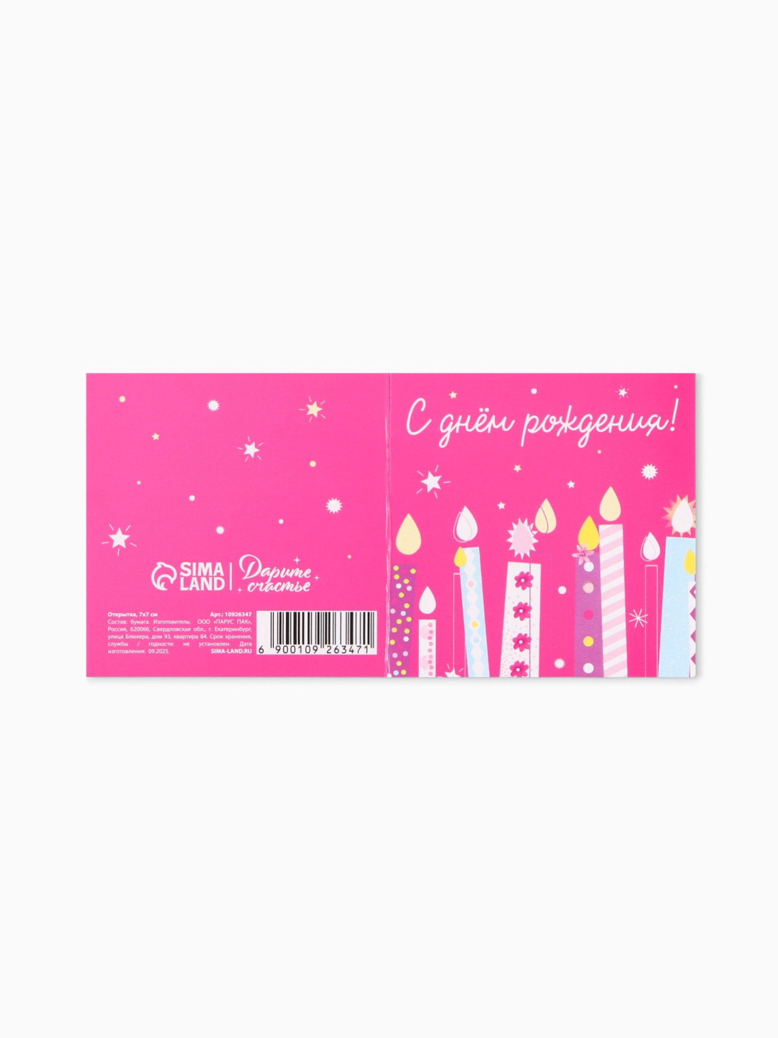 Открытка мини "Поздравляю с днём рождения", 7x7 см, Дарите Счастье, Россия