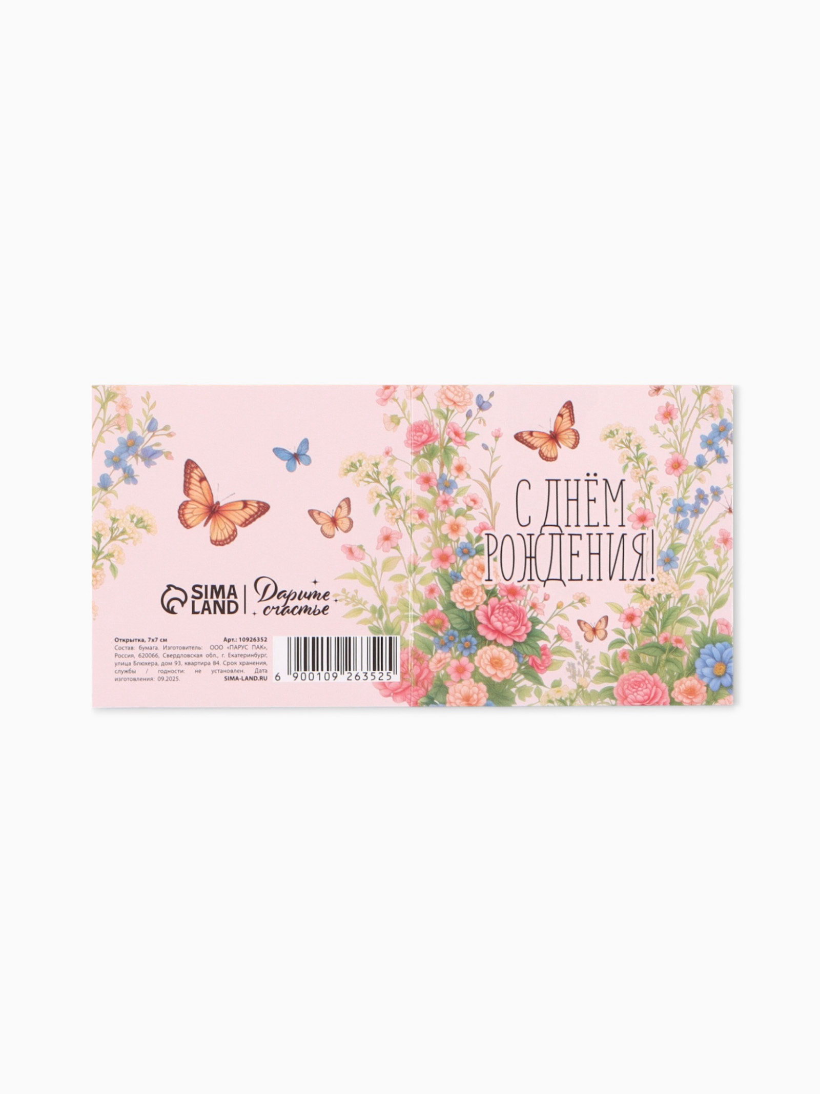 Открытка мини "С Днём рождения", 7x7 см, Дарите Счастье, Россия
