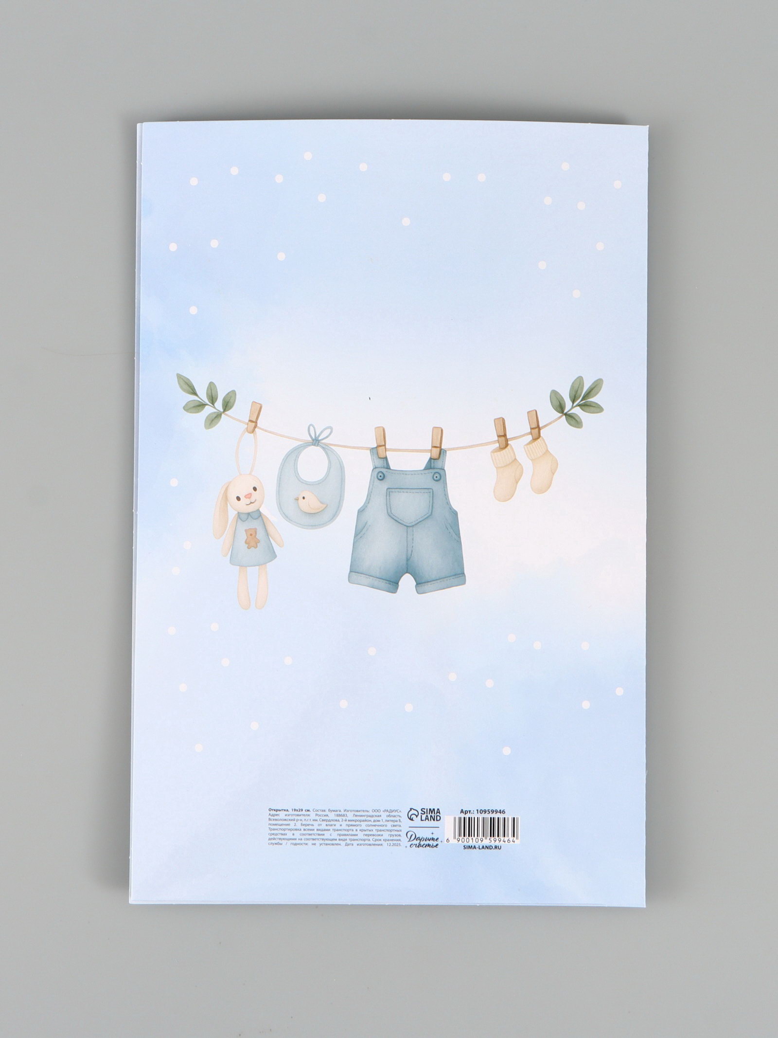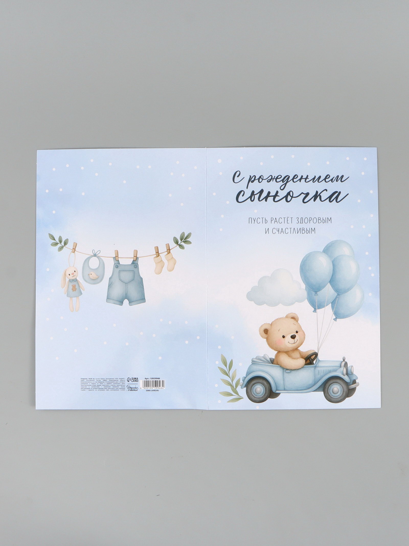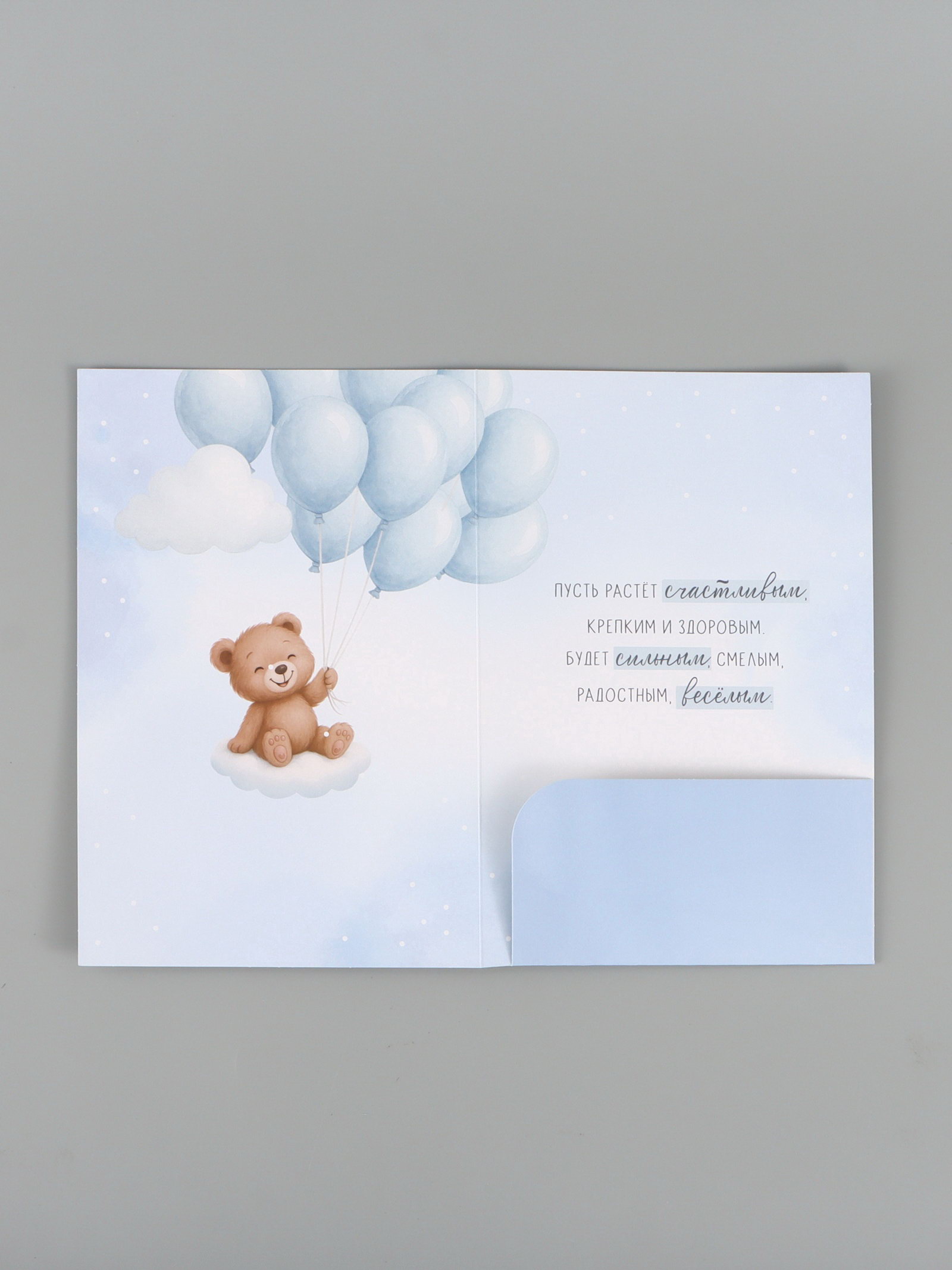 Открытка поздравительная с карманом для денег "С рождением сыночка", 19 x 29 см, Дарите Счастье, Россия