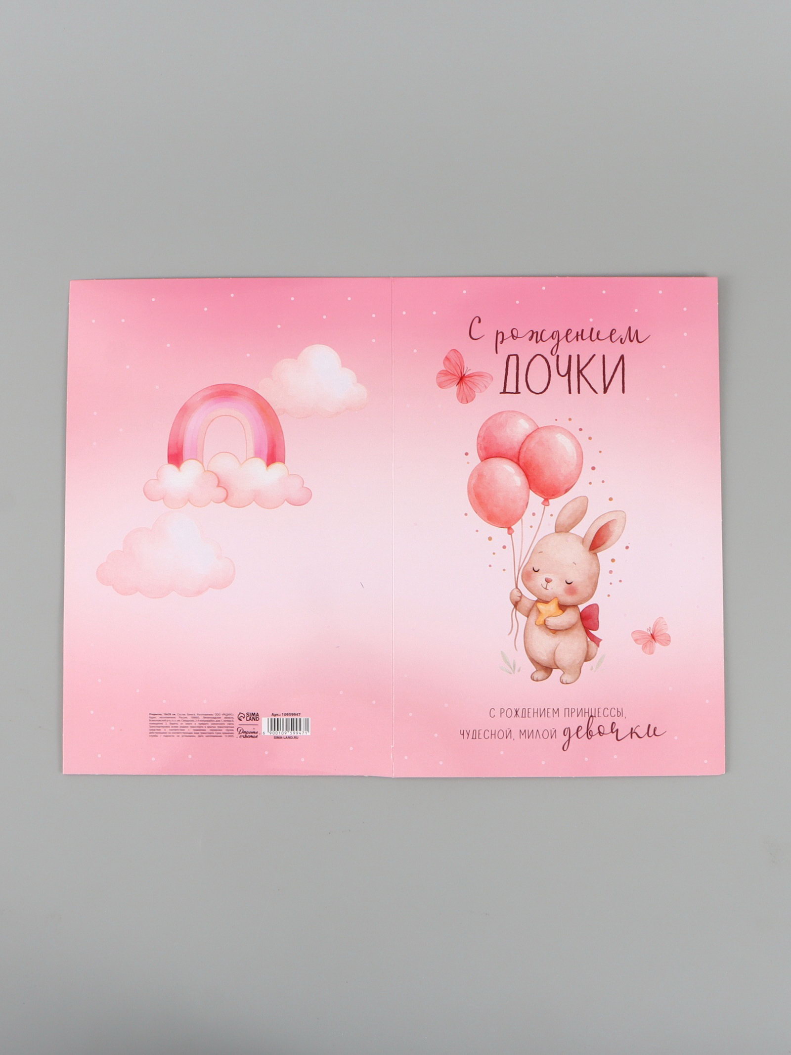 Размер упаковки: 19 x 29 x 0.2 см. tnved: 4909000000 Форма: Стандарт Размер: Большой (от 22 см) см Особенности: С держателем Отделка: Без отделки Тематика праздника: Рождение ребёнка Для кого: Для девочки | ||