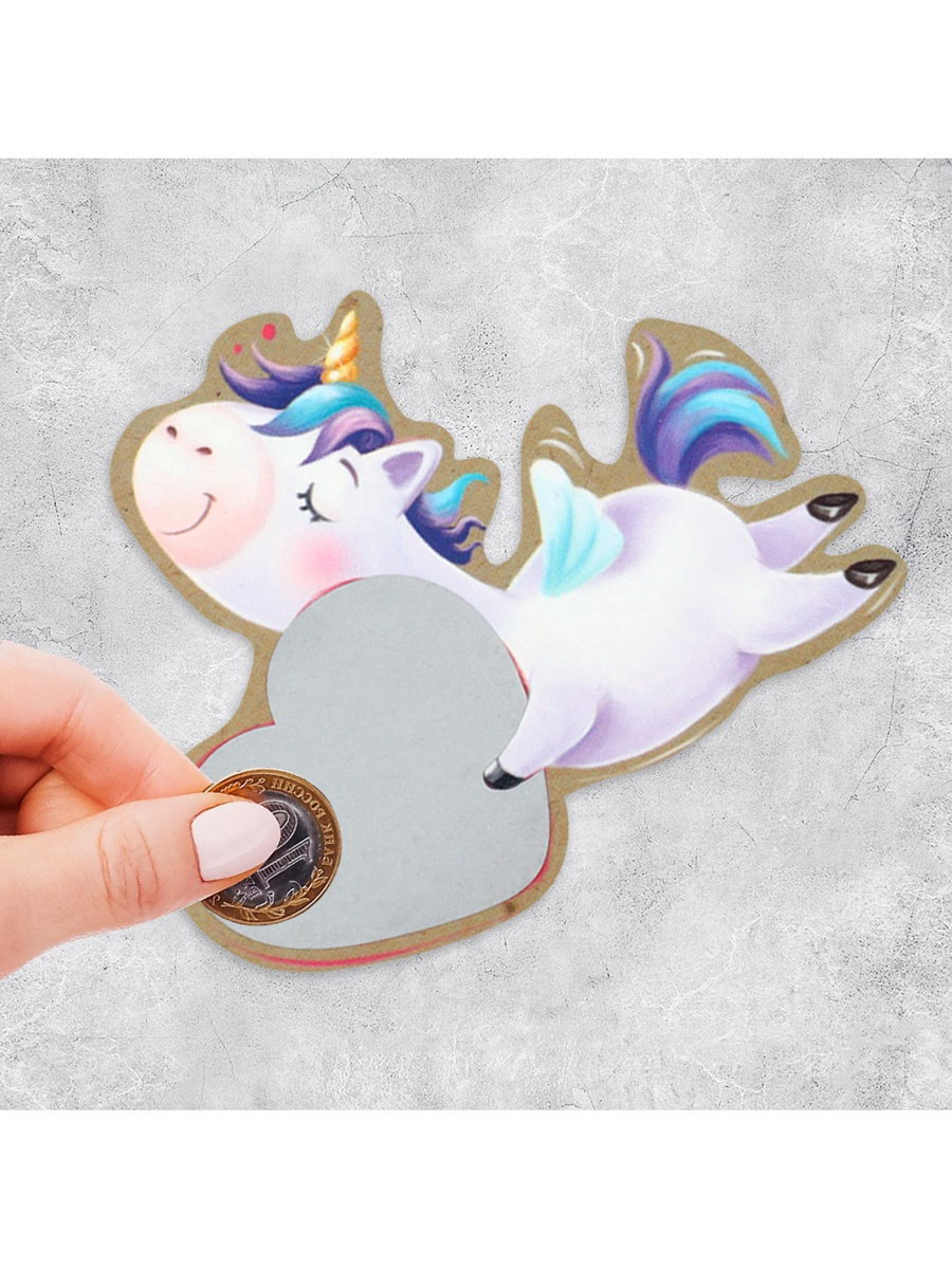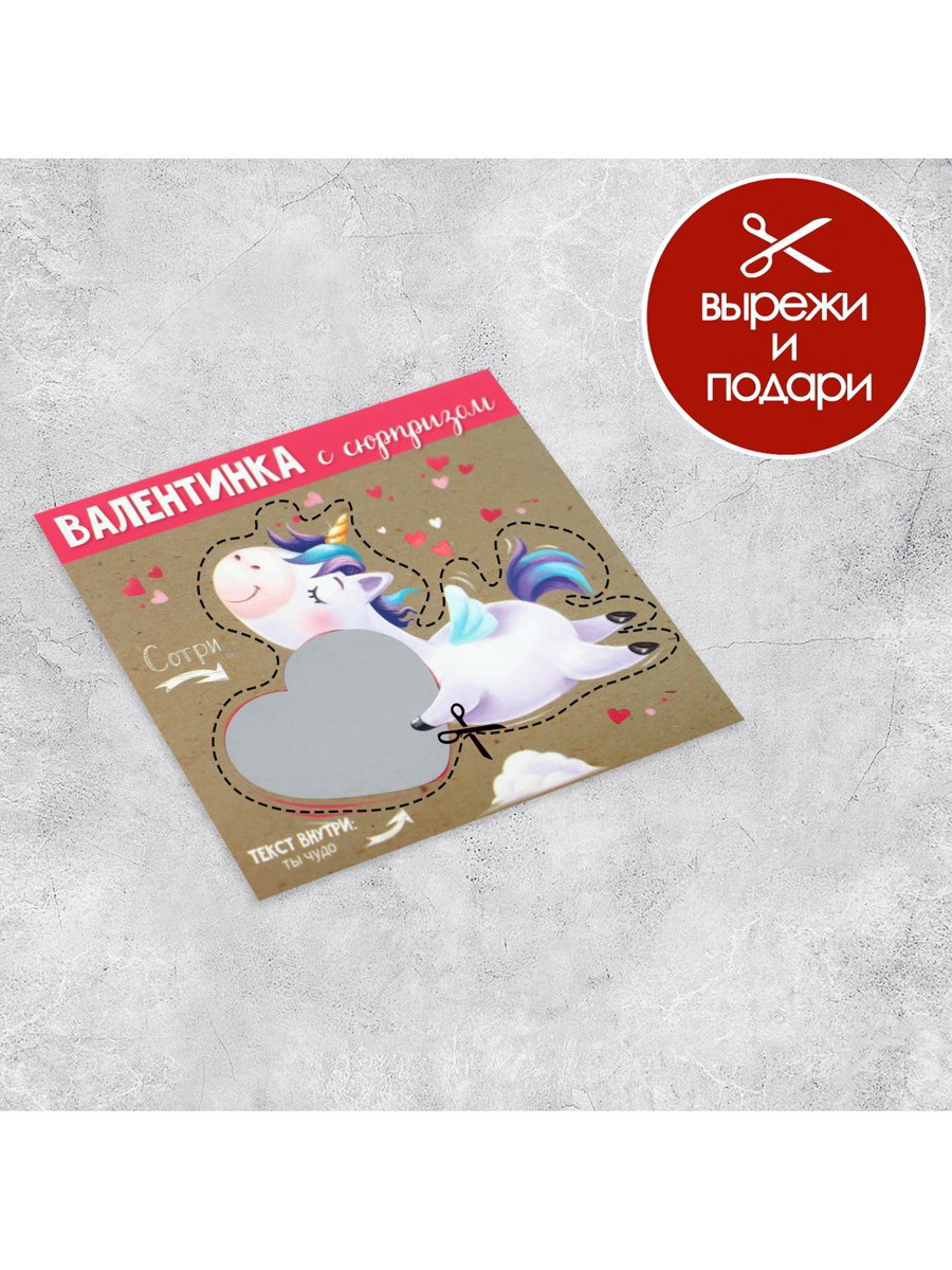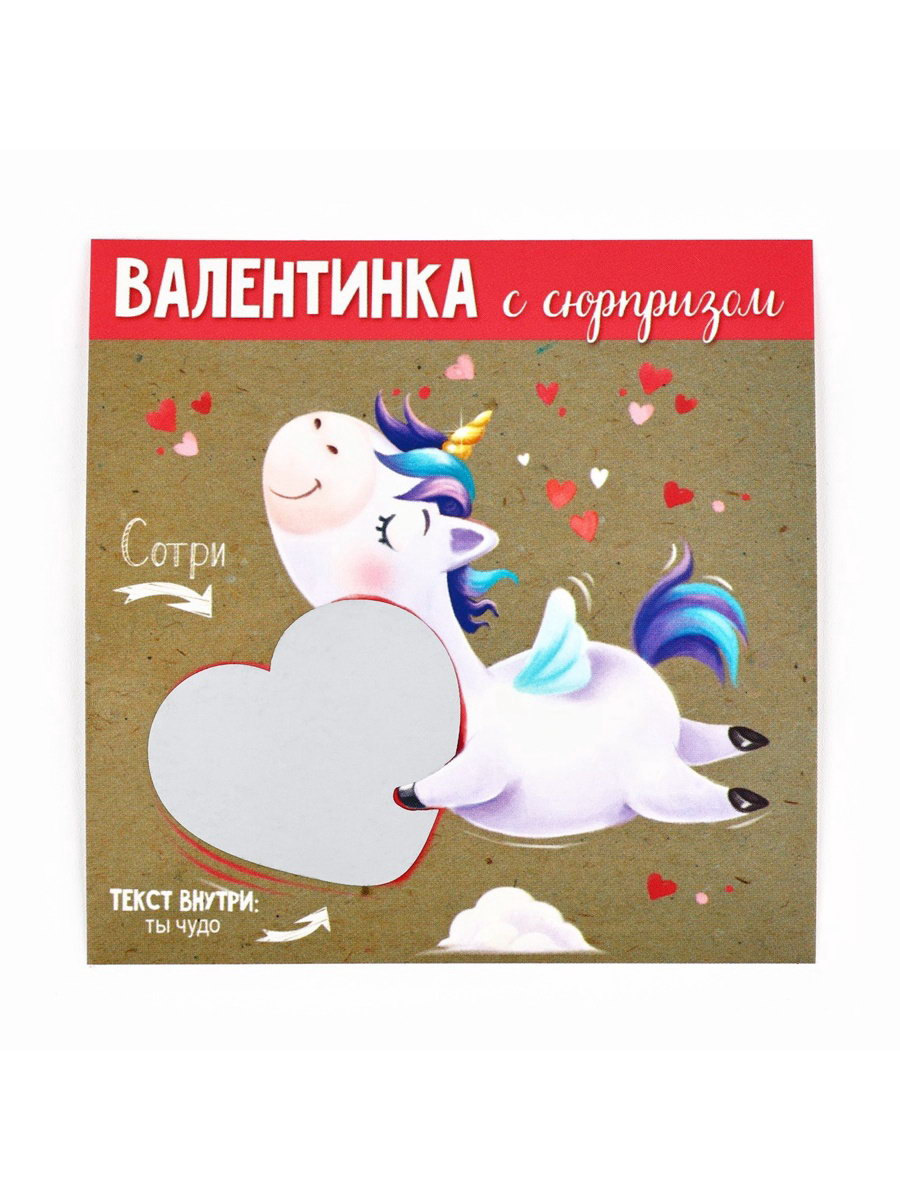Валентинка со скретч–слоем "Ты Чудо", 14 февраля, единорог 10 x 10 см, Дарите Счастье, Россия