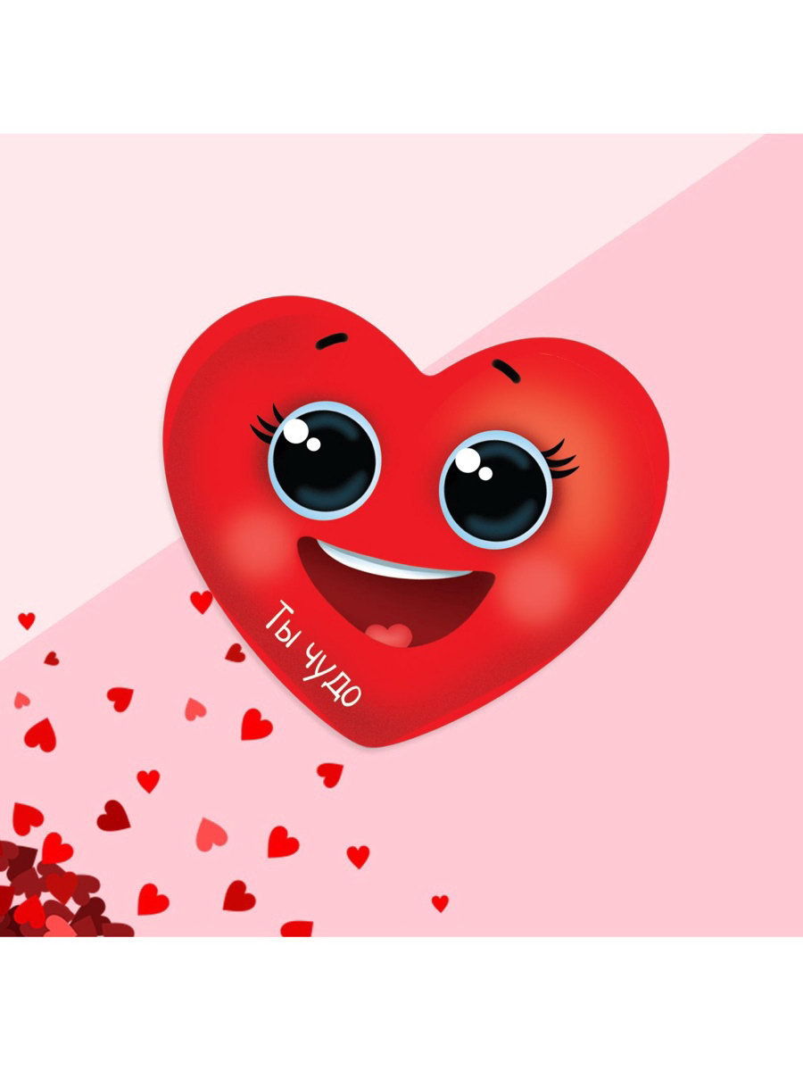 Открытка-валентинка "Ты чудо", 14 февраля, сердечко, 7.1 x 6.1 см, Дарите Счастье, Россия