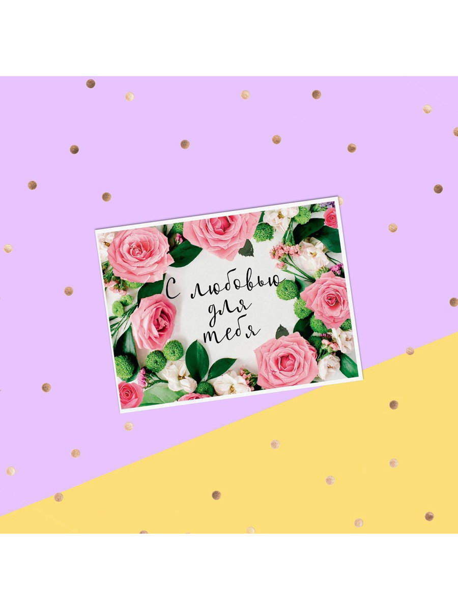 Открытка-комплимент "С любовью для тебя" розовые розы, 8x6 см, Дарите Счастье, Россия