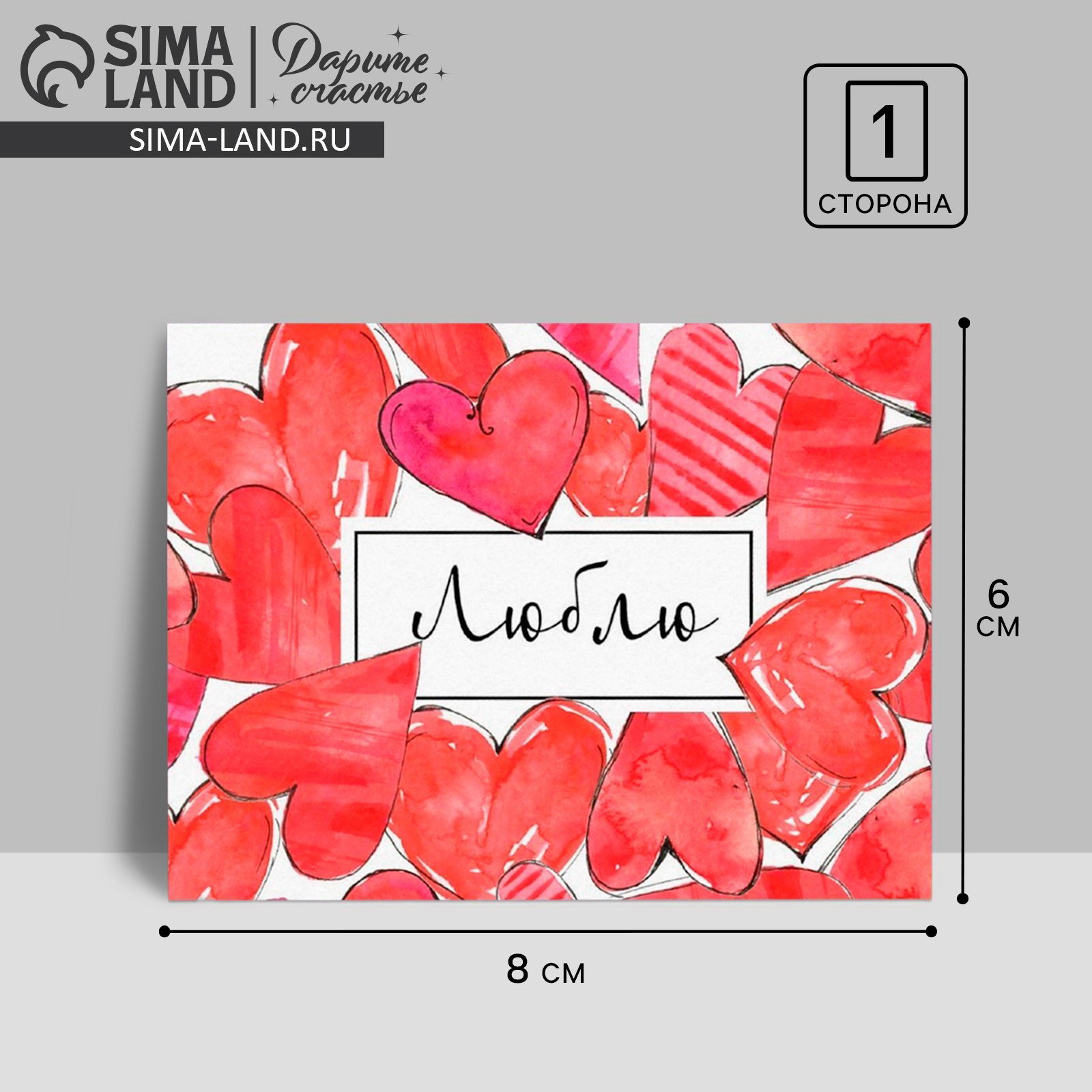 Открытка-комплимент "Люблю" сердечки, 8 x 6 см, Дарите Счастье, Россия