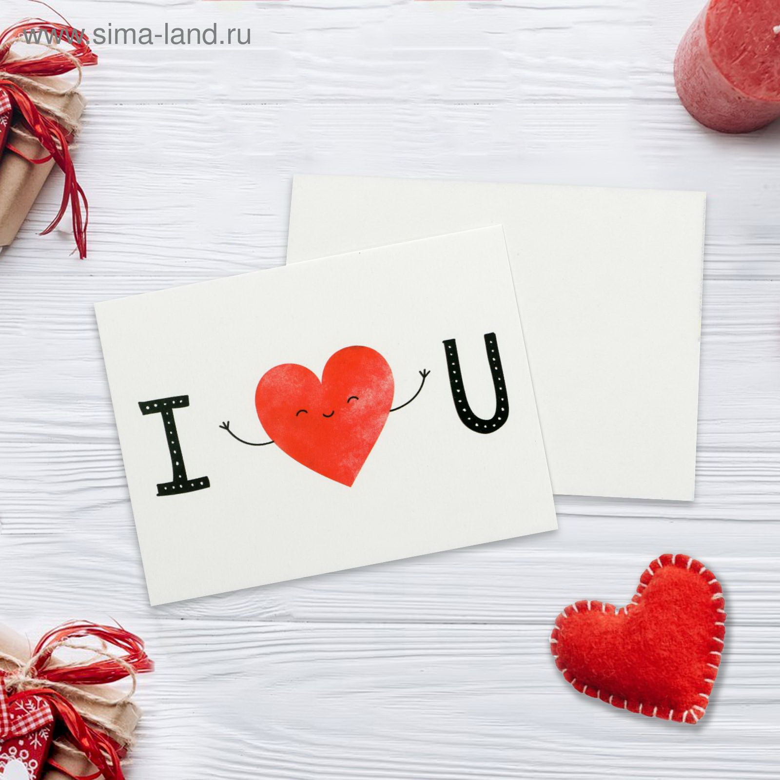 Открытка-мини "I LOVE YOU", сердечко, 8 x 6см, Дарите Счастье, Россия