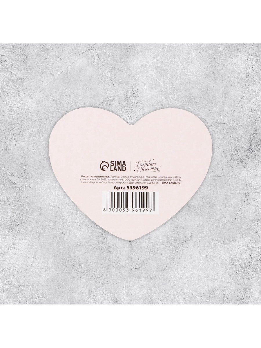 Размер упаковки: 6 x 0.1 x 14 см. Форма: Фигурная Размер: Мини (до 8 см) см tnved: 4911990000 Температурное ограничение: Нет Вид открытки: Двойная Отделка: Без отделки Особенности: Без особенностей Тематика праздника: 14 Февраля | ||