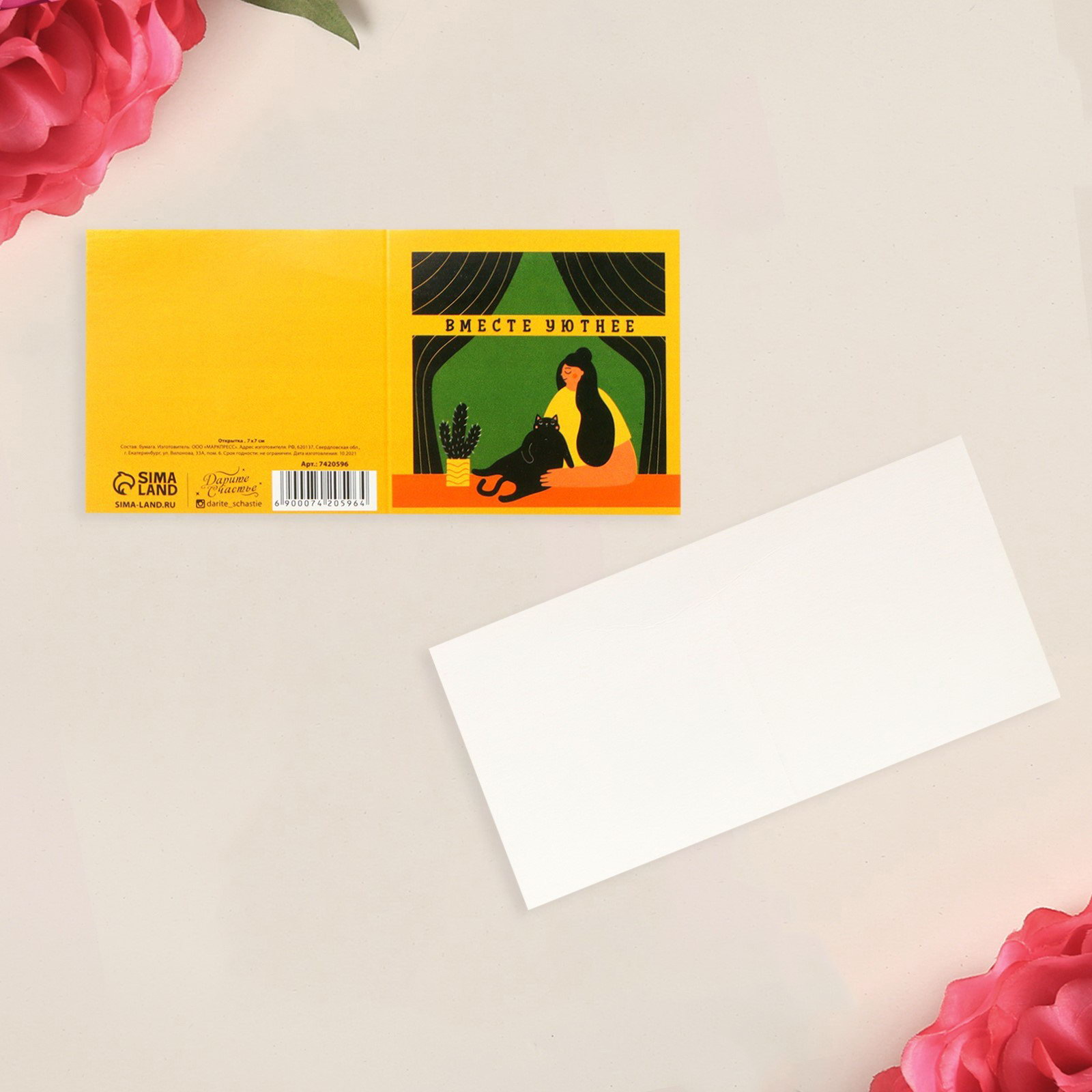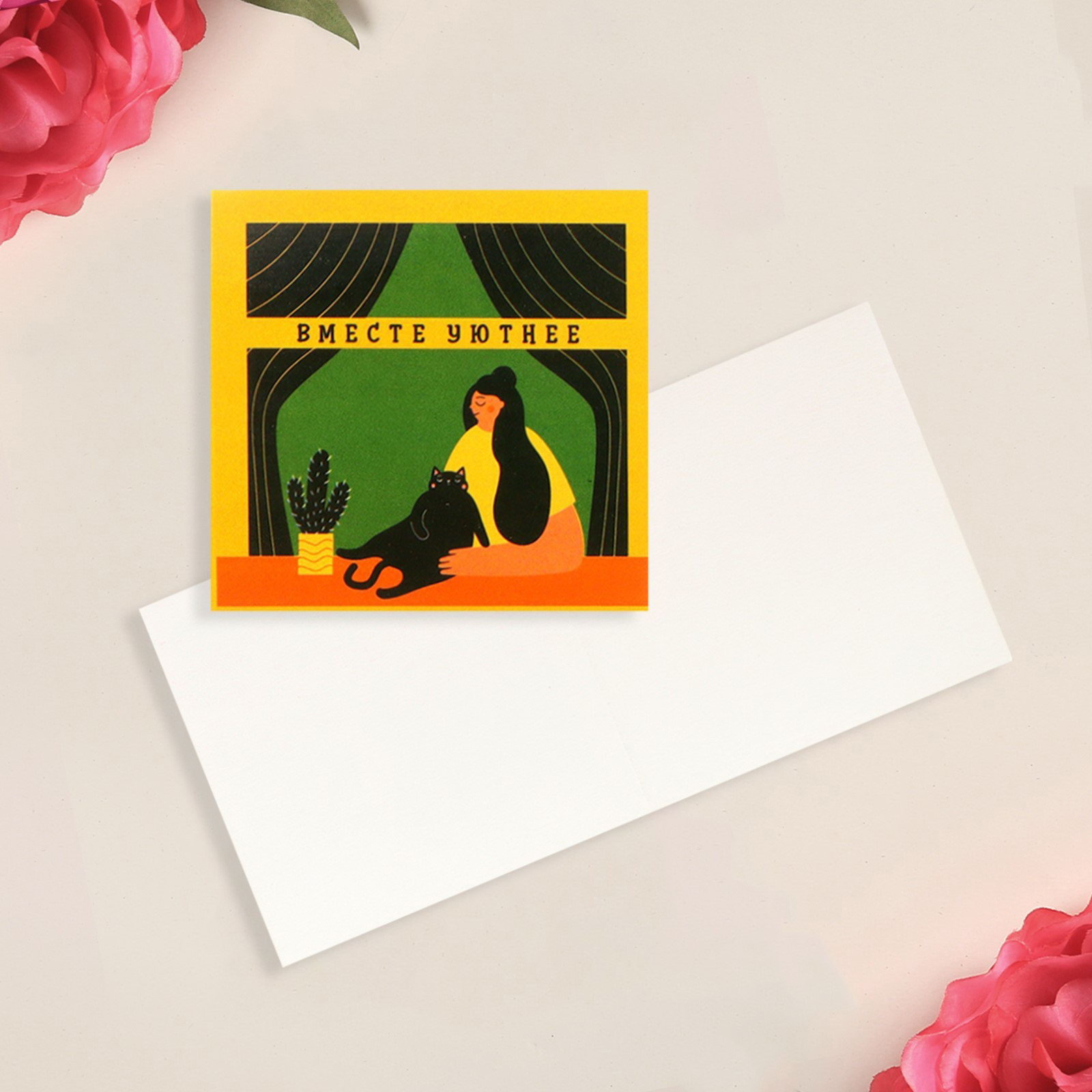 Открытка-мини "Вместе уютнее", девушка, 7 x 7 см, Дарите Счастье, Россия