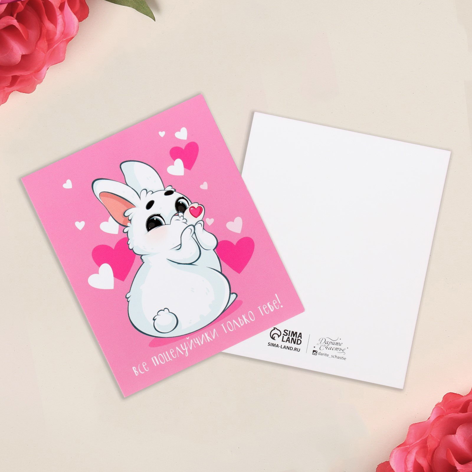 Открытка мини "Поцелуйчик", заяц, 8.8 x 10.7 см, Дарите Счастье, Россия
