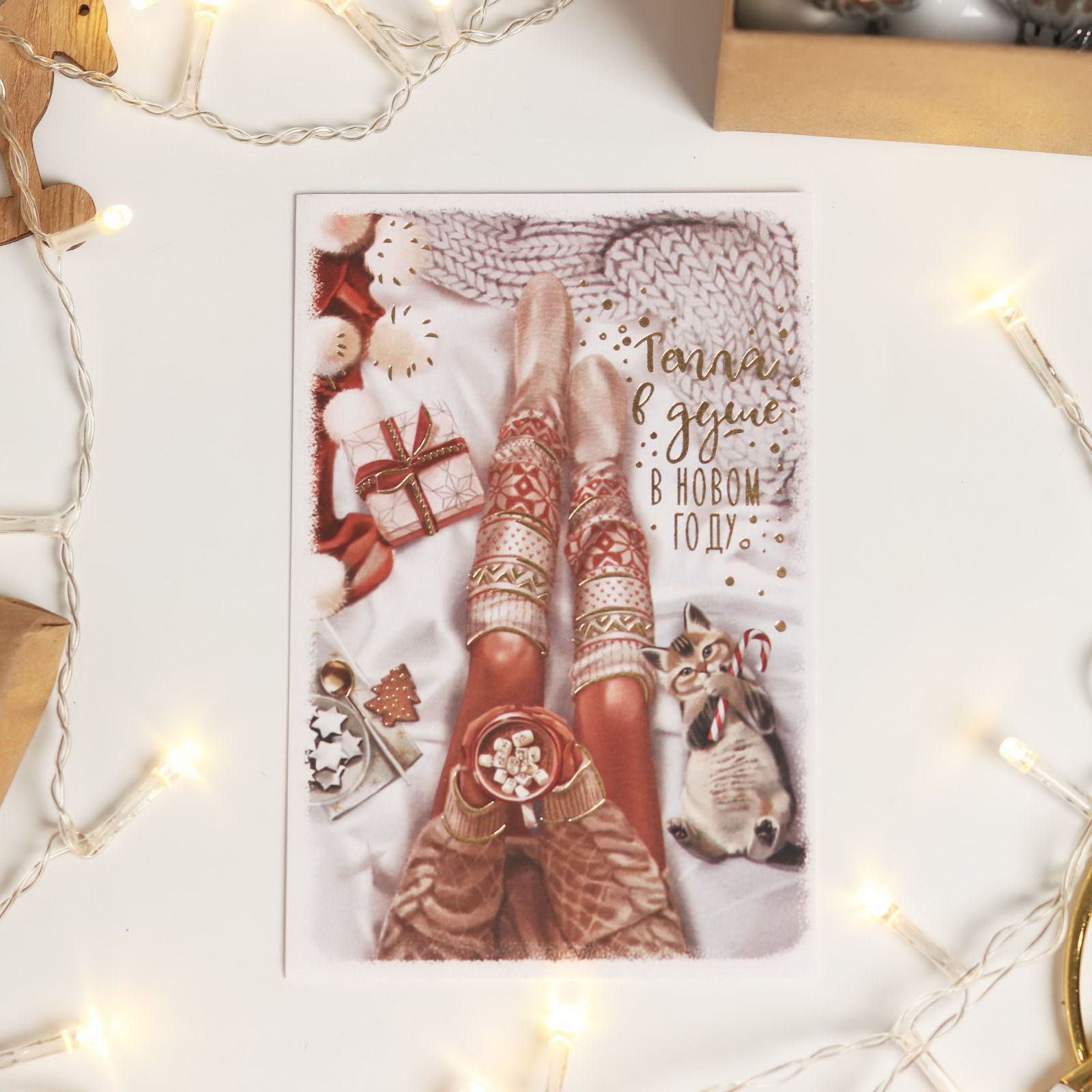 Открытка С Новым годом на акварельном картоне "Тепла в душе", тиснение, 10 x 15 см, 0.1x10x15 см., Дарите Счастье, Китай