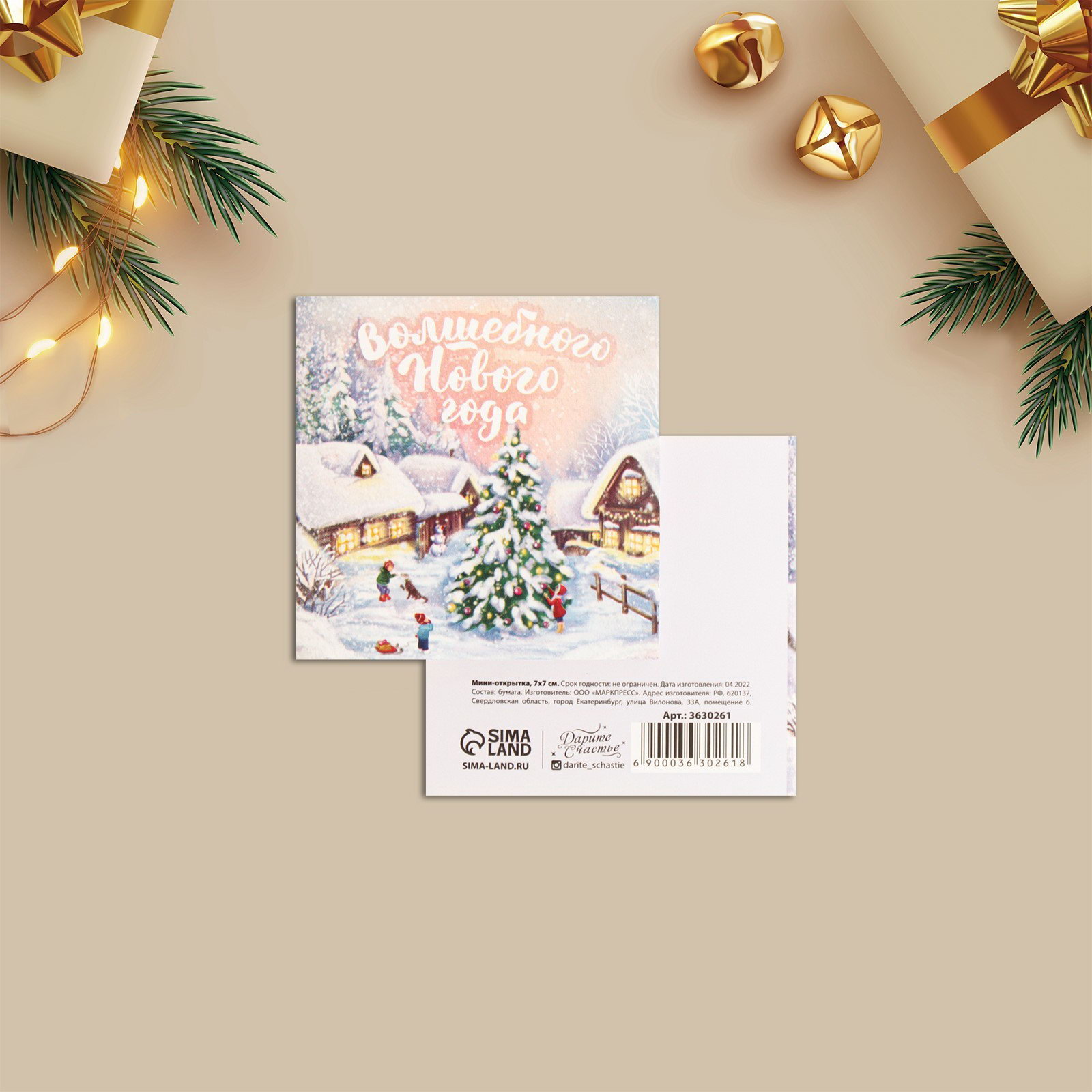 Открытка-мини "Волшебного Нового Года!" пейзаж, 7x7 см, Дарите Счастье, Россия