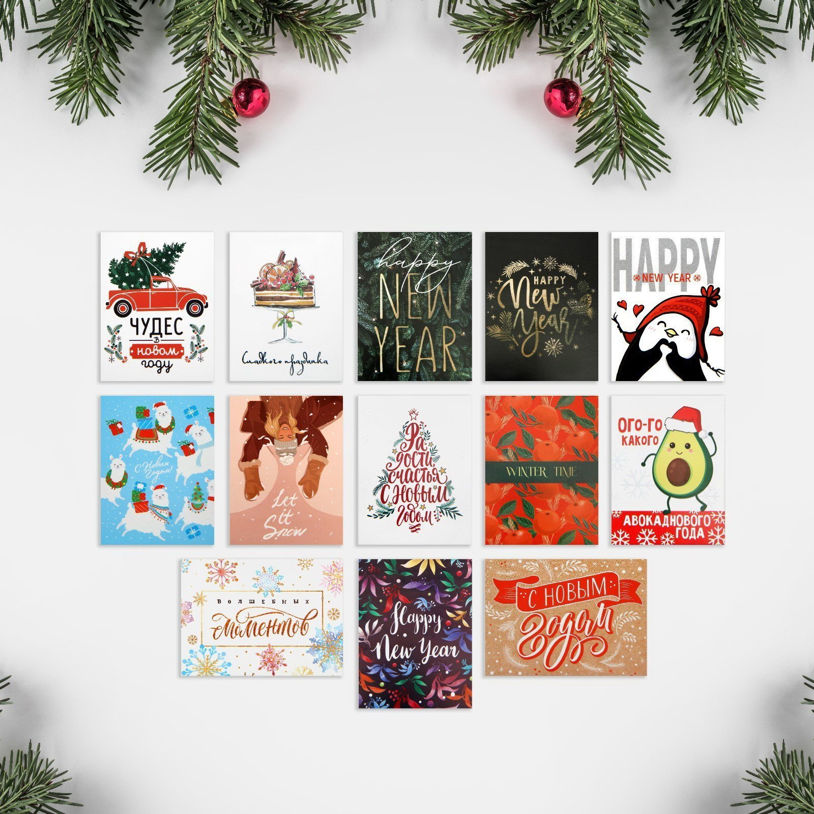 Набор открыток-комплиментов "Новогодние" в наборе 26 шт., 8x6 см, Дарите Счастье, Россия
