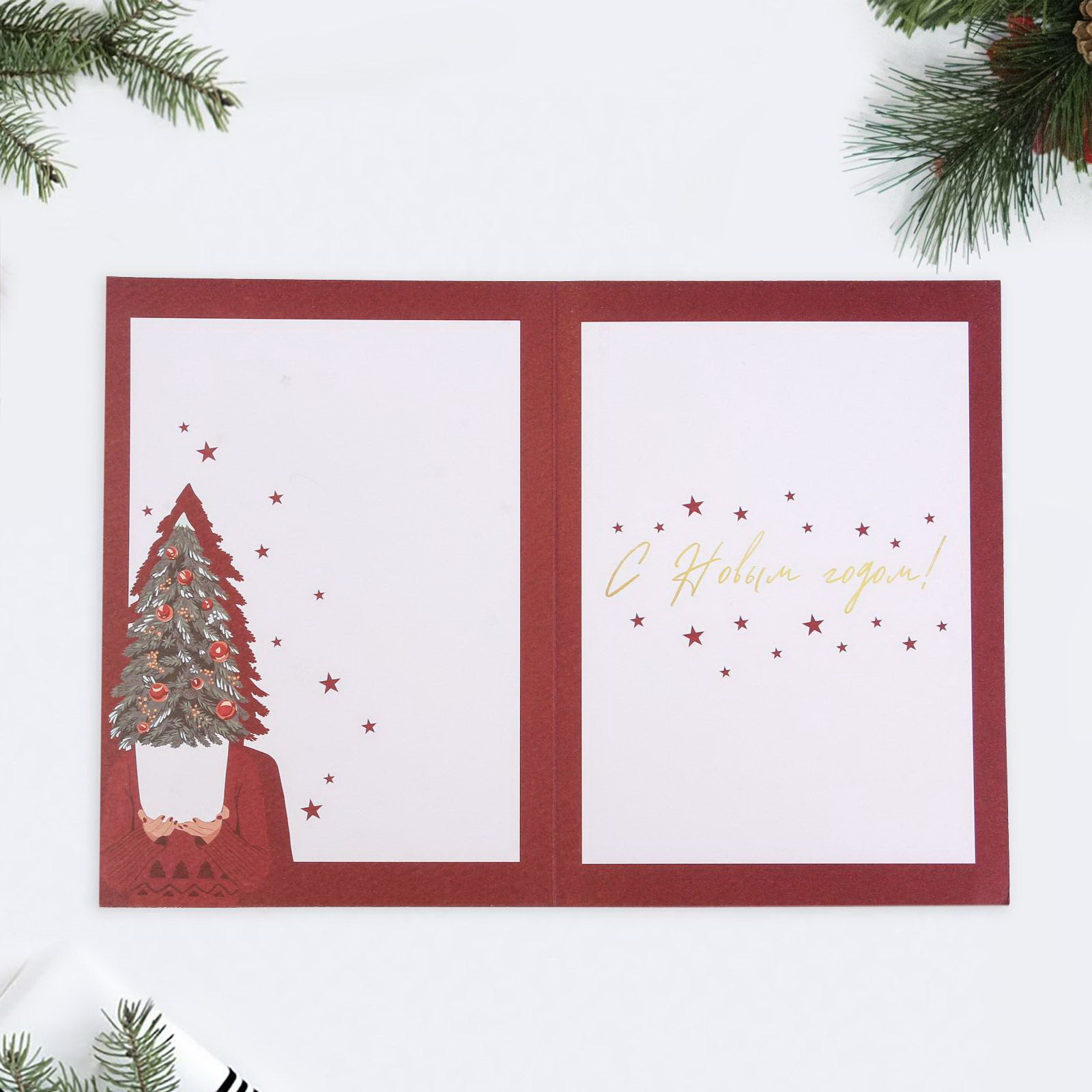 Открытка С Новым годом на акварельном картоне "Время волшебства", тиснение, 11.5x16 см, 0.1x11.8x16.4 см., Дарите Счастье, Китай