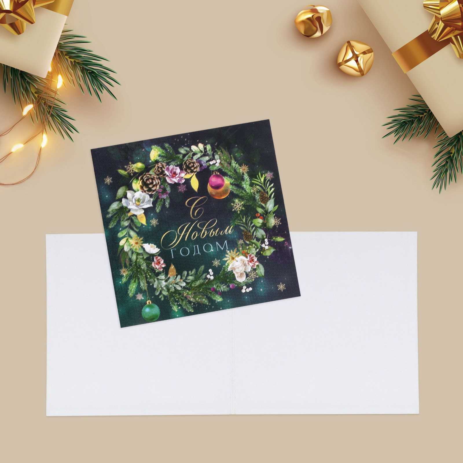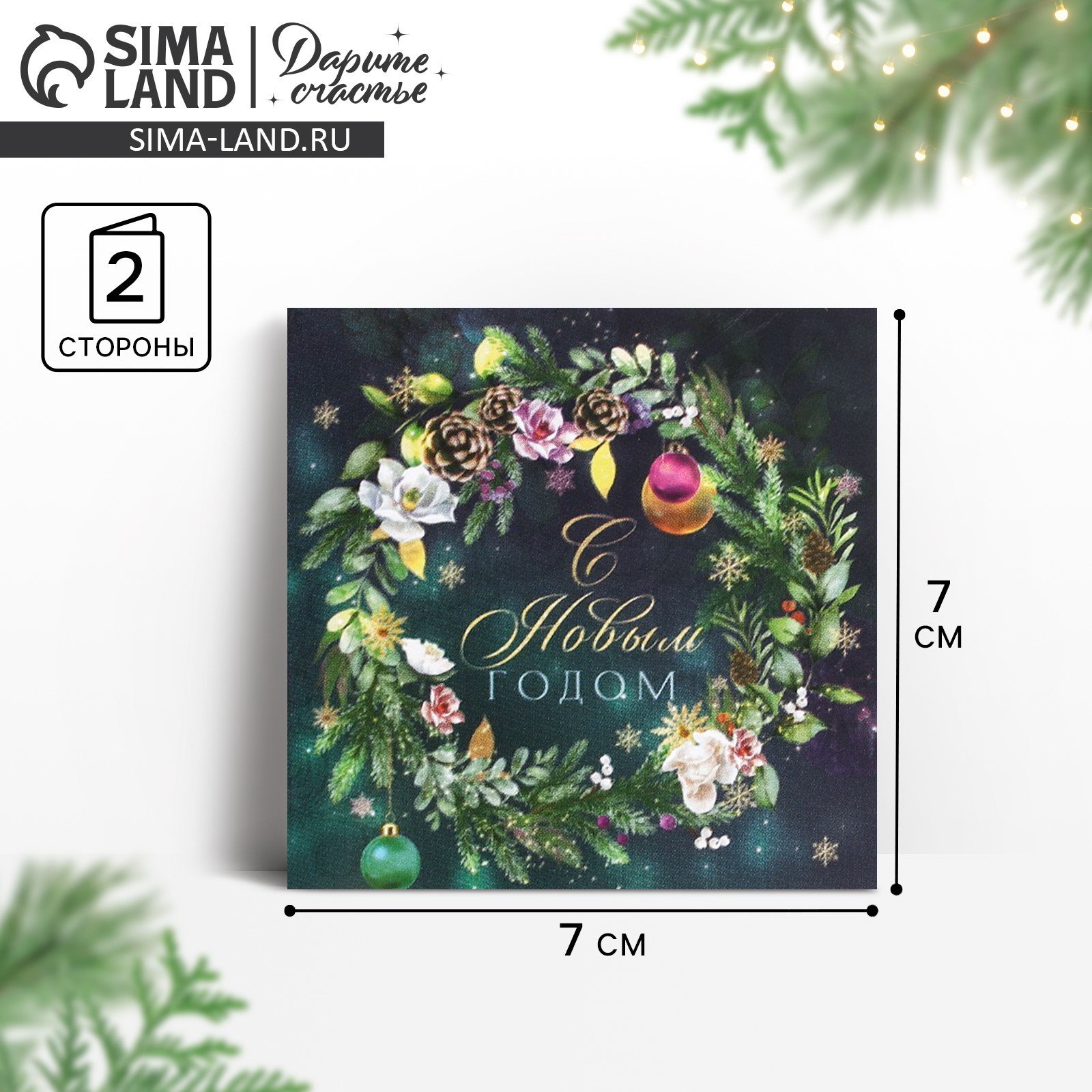Мини-открытка "Новогодний венок", 7x7 см, Дарите Счастье, Россия
