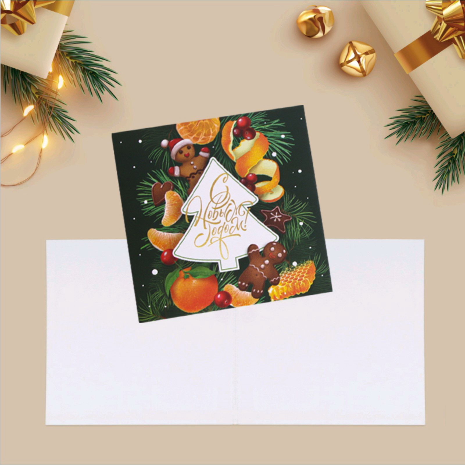 Открытка-мини с новым годом "Вкусный праздник", 7x7 см, Дарите Счастье, Россия
