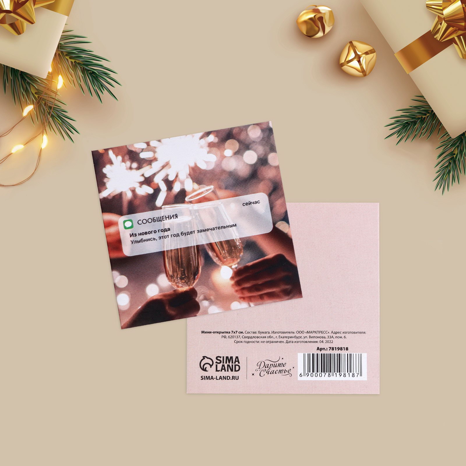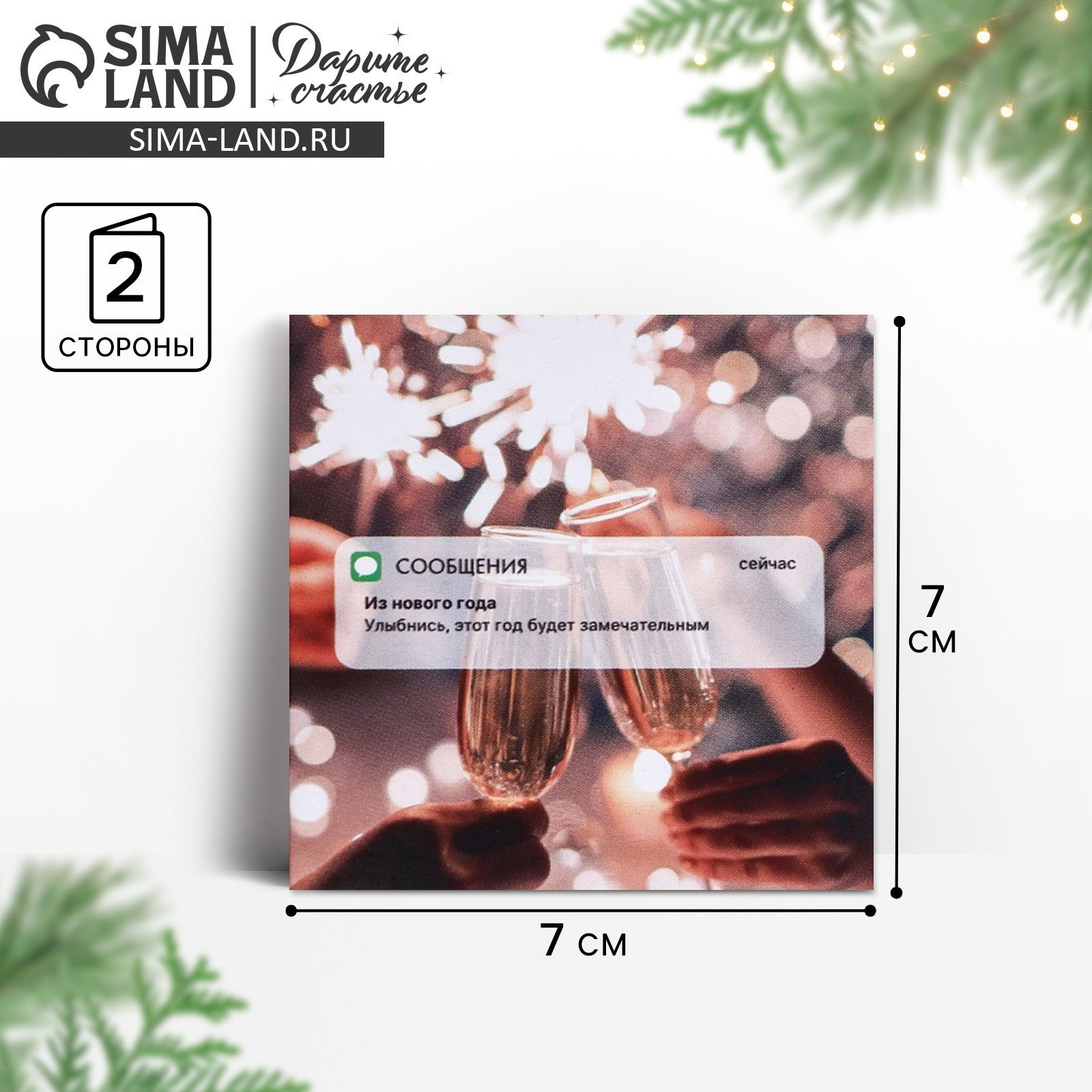 Мини-открытка "Новогоднее послание", 7x7 см, Дарите Счастье, Россия